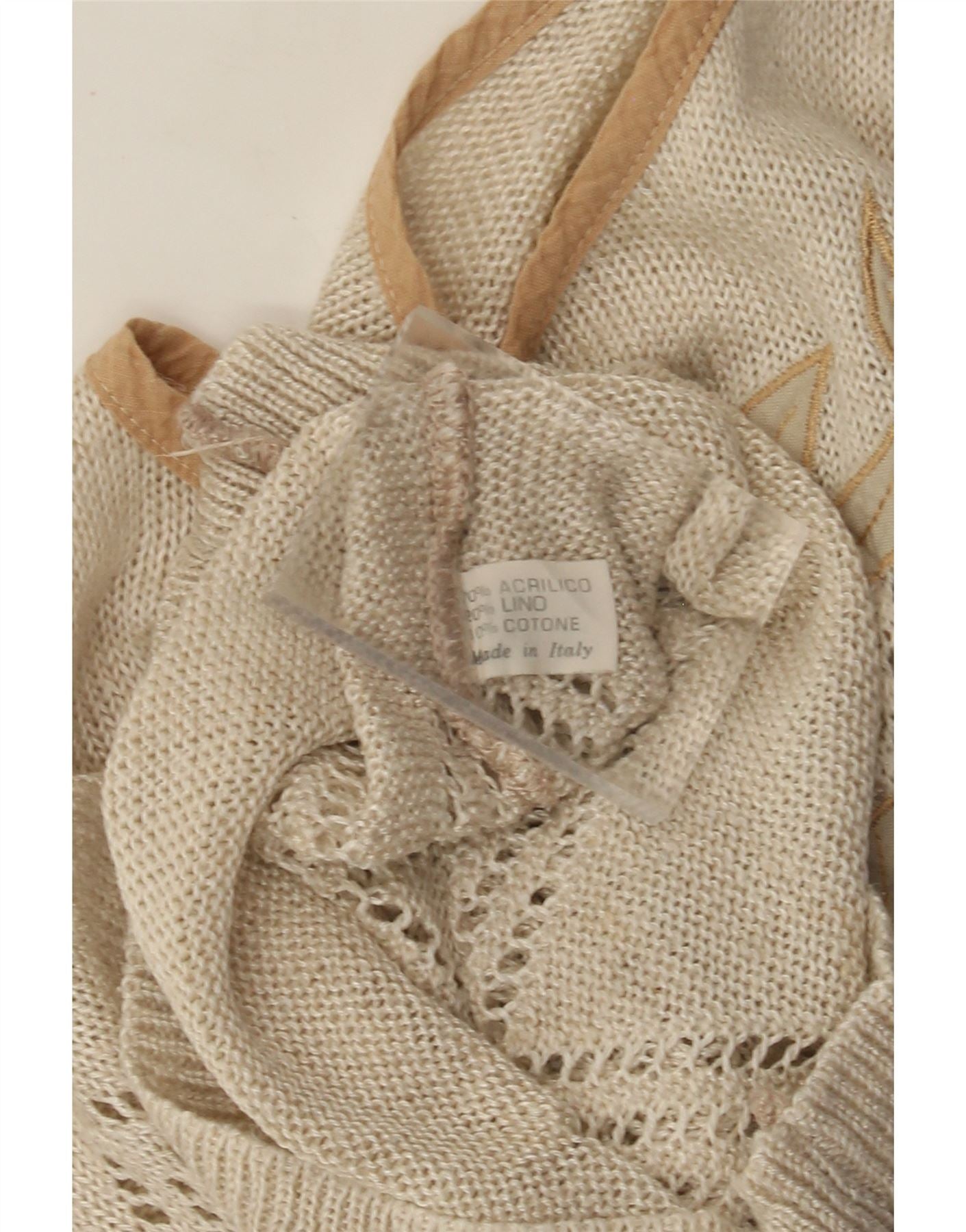 Vintage Dame Vest Tank Top UK 12 Medium Beige Floral Acryl