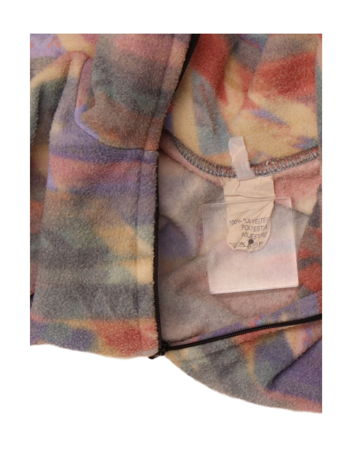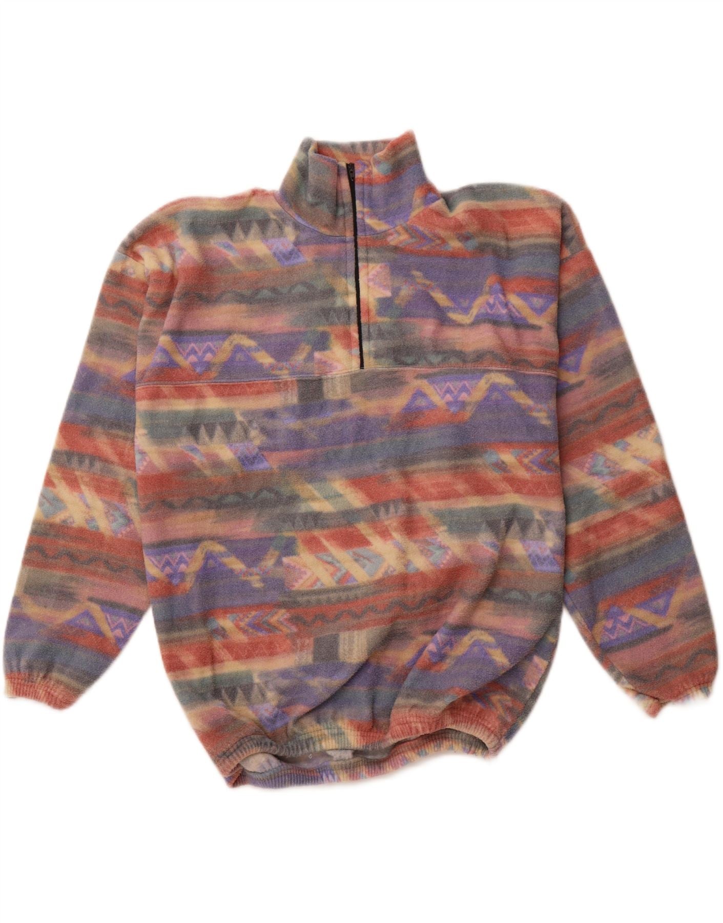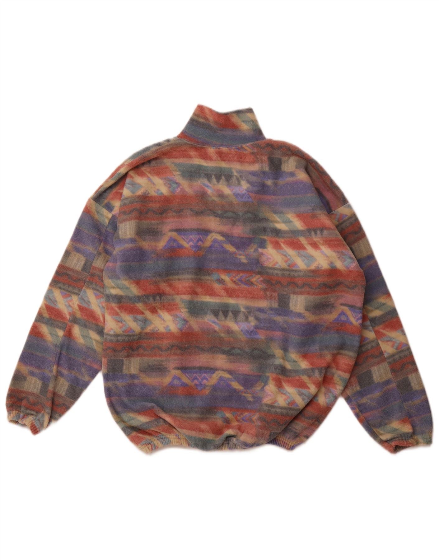 VINTAGE Dame Fleece Jumper med lynlås DK 16 Stor Flerfarvet Geometrisk