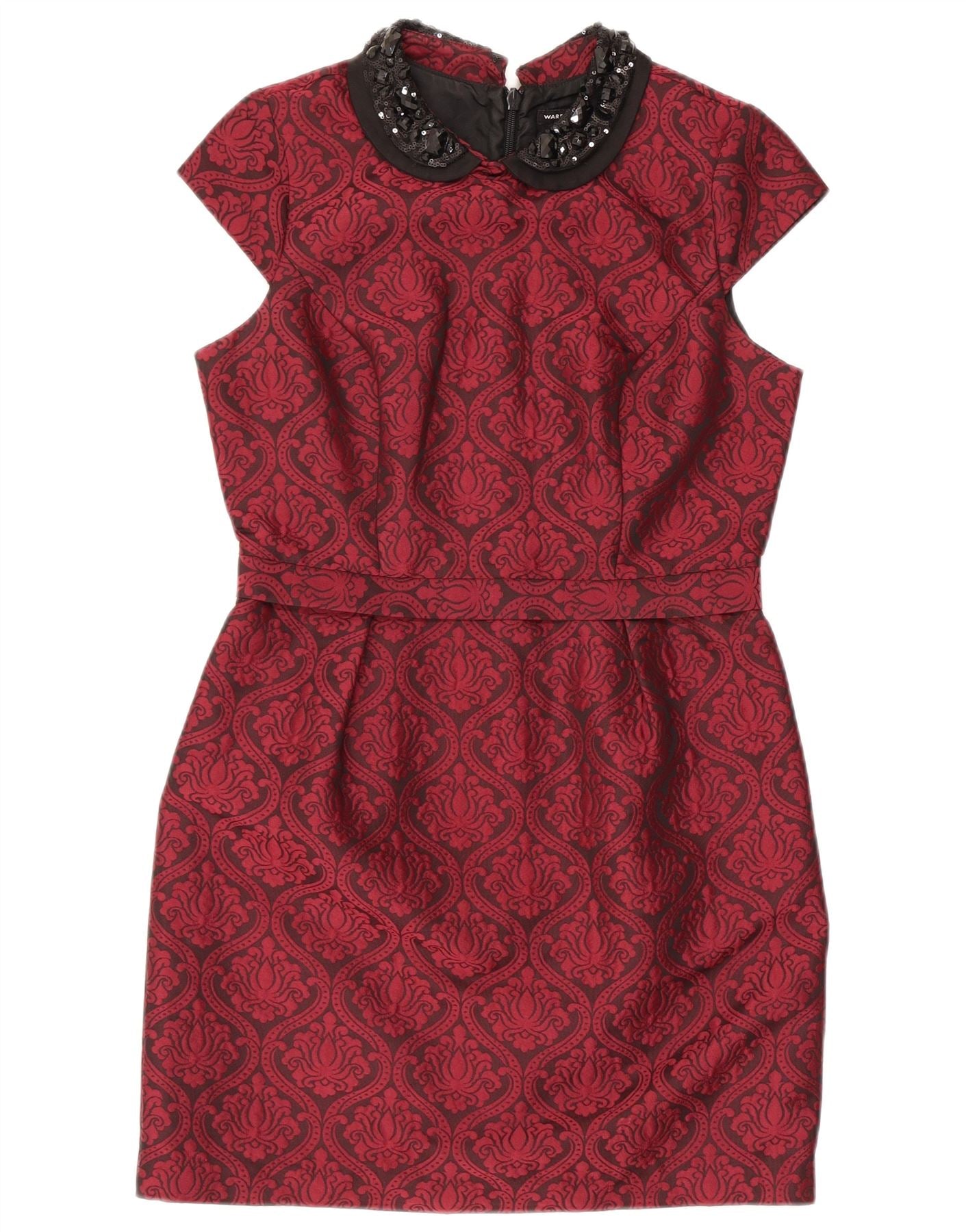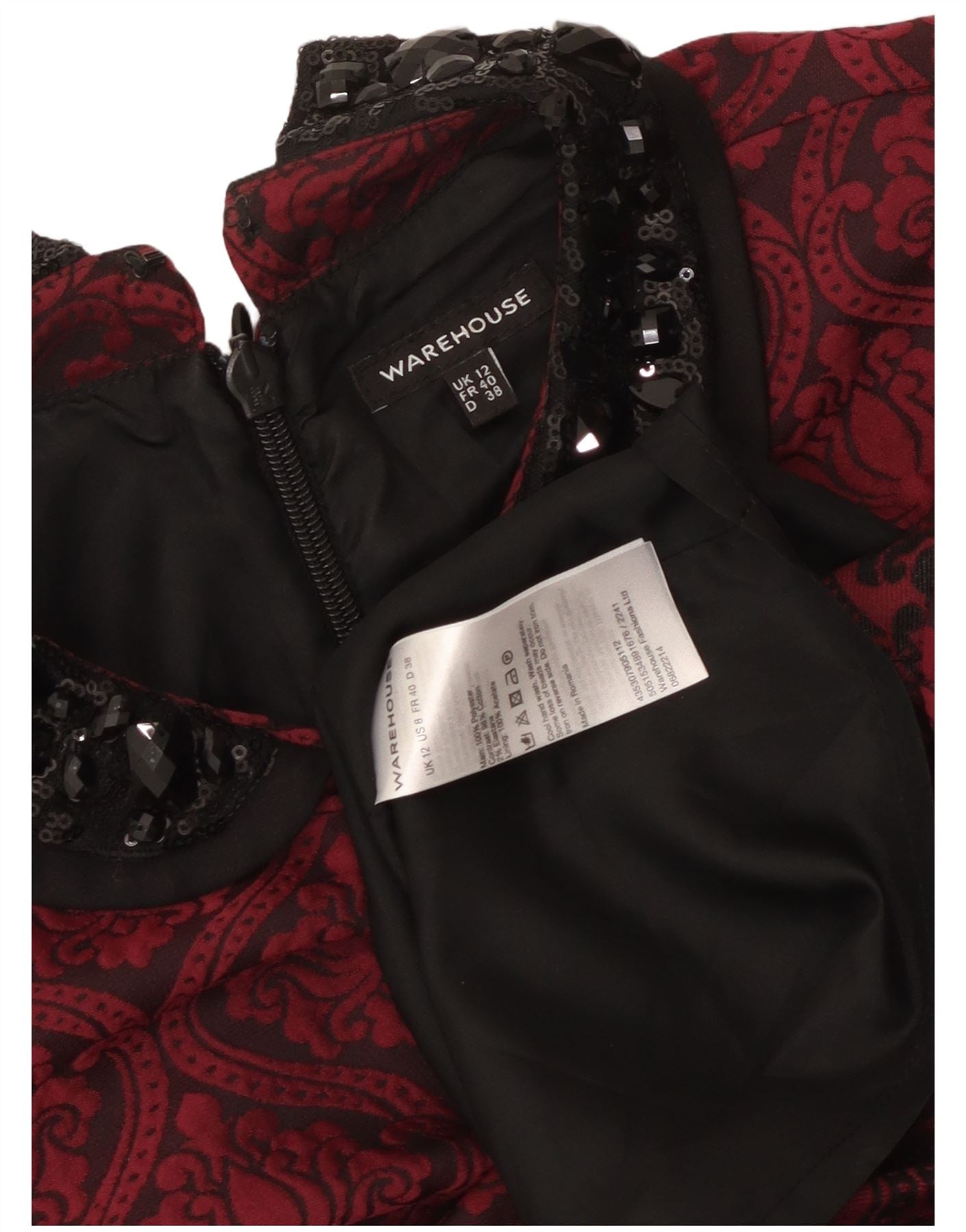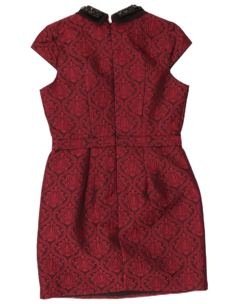WAREHOUSE Womens Sheath Dress UK 12 Medium Burgundy Paisley Polyester