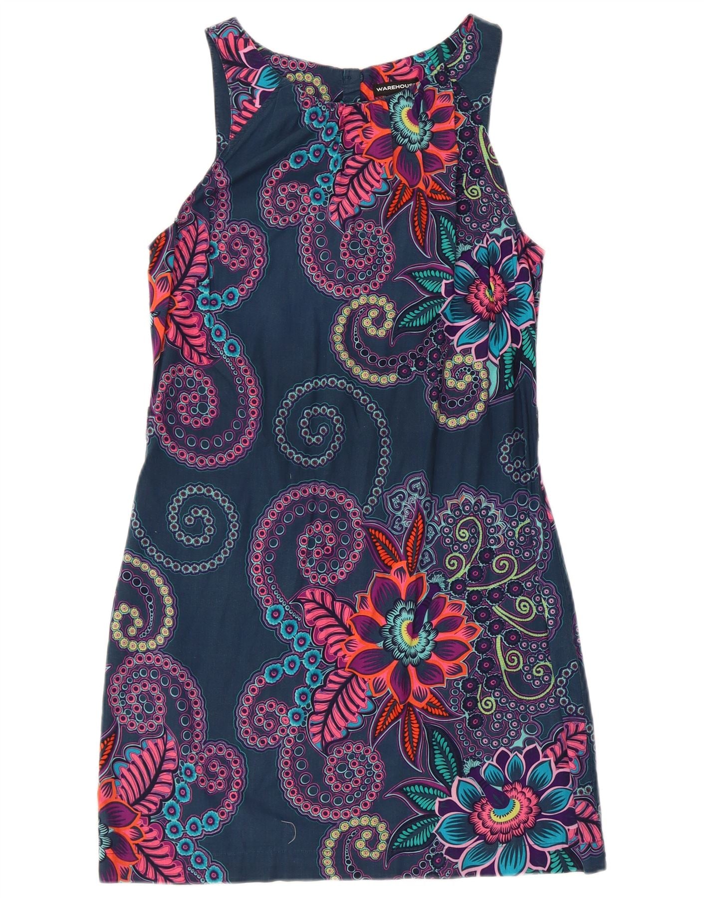 WAREHOUSE Womens Sleeveless Sheath Dress UK 8 Small Navy Blue Floral