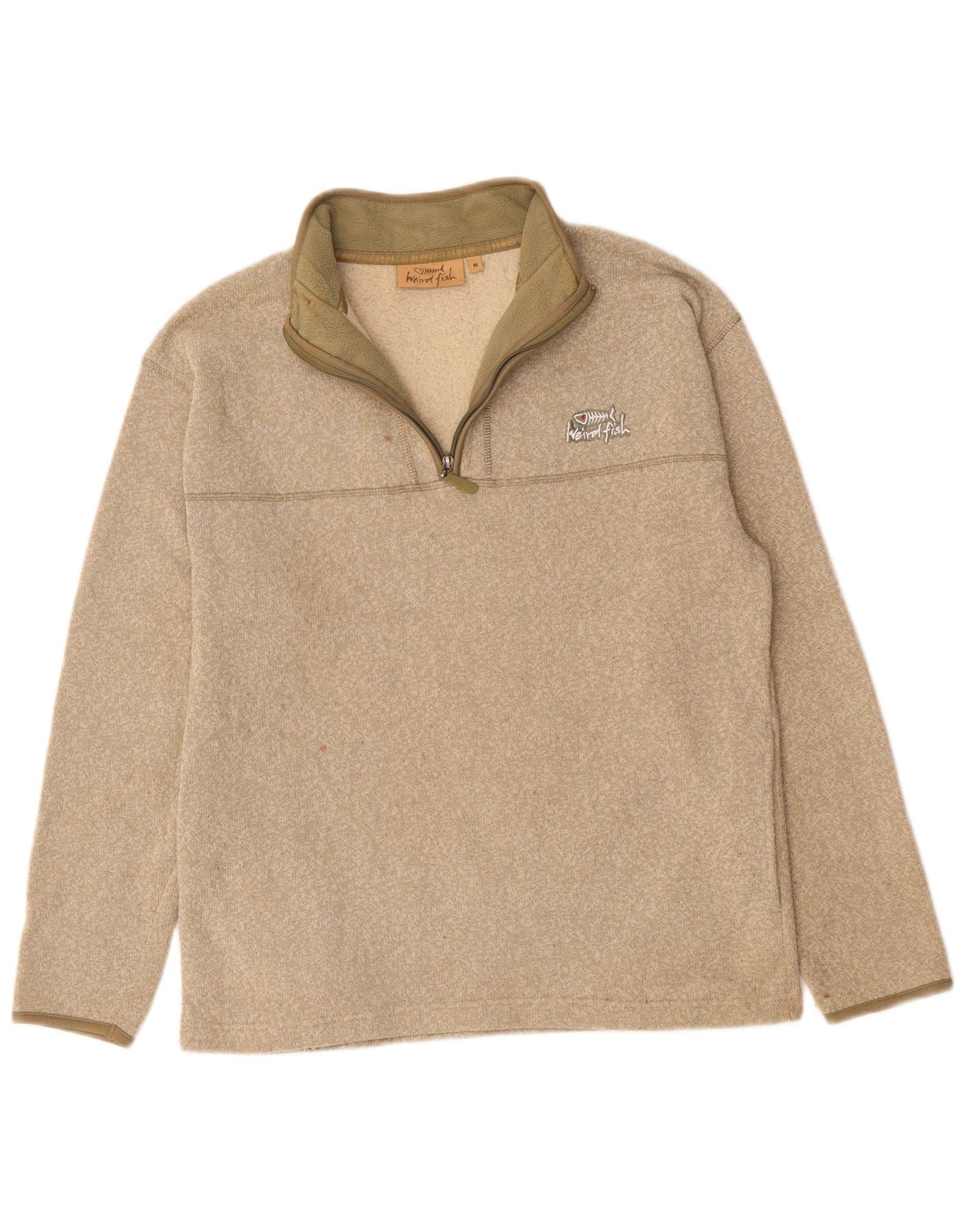 WEIRD FISH Herre Zip Neck Sweatshirt Jumper Medium Beige Polyester