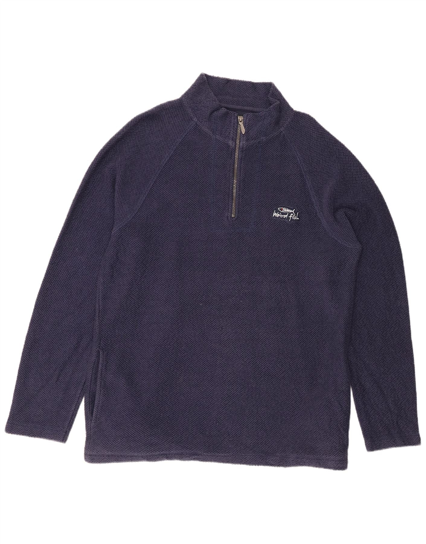 WEIRD FISH Herre Zip Neck Sweatshirt Jumper XL Navy Blue Bomuld