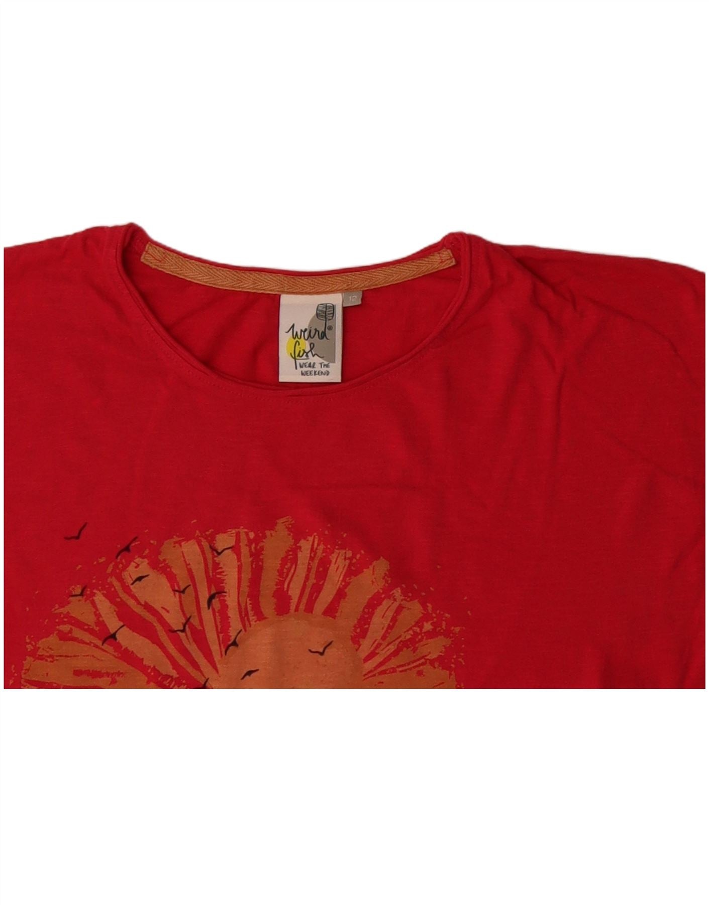 WEIRD FISH Womens Graphic T-Shirt Top UK 12 Medium Red Cotton
