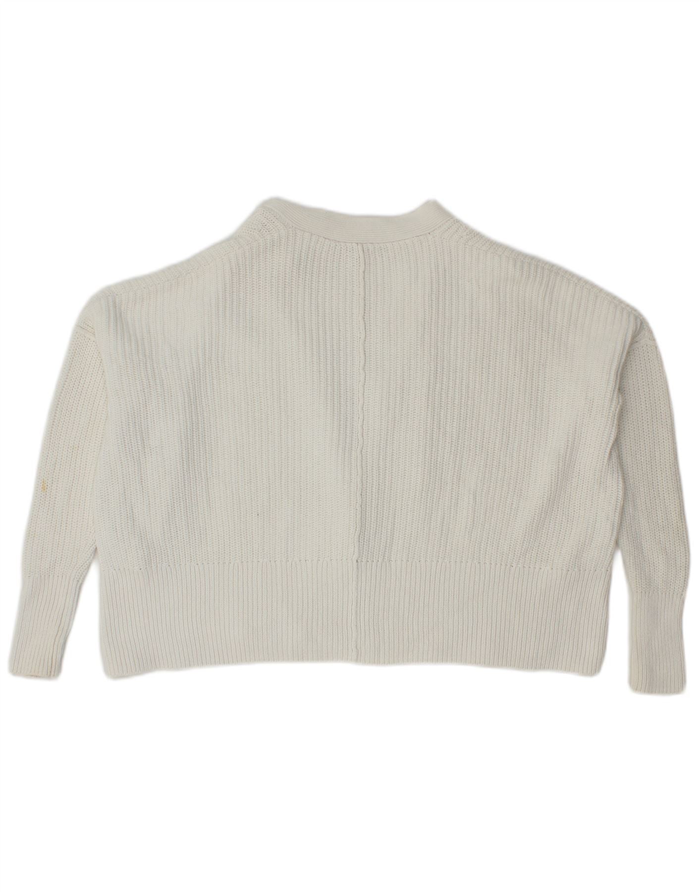 WHISTLES Dame Oversized Crop Open Cardigan Sweater UK 6 XS Hvid Bomuld