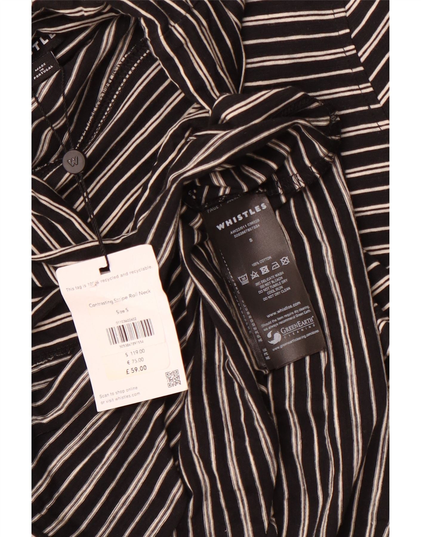 WHISTLES Dame Roll Neck Top Langærmet UK 10 Lille sort stribet bomuld
