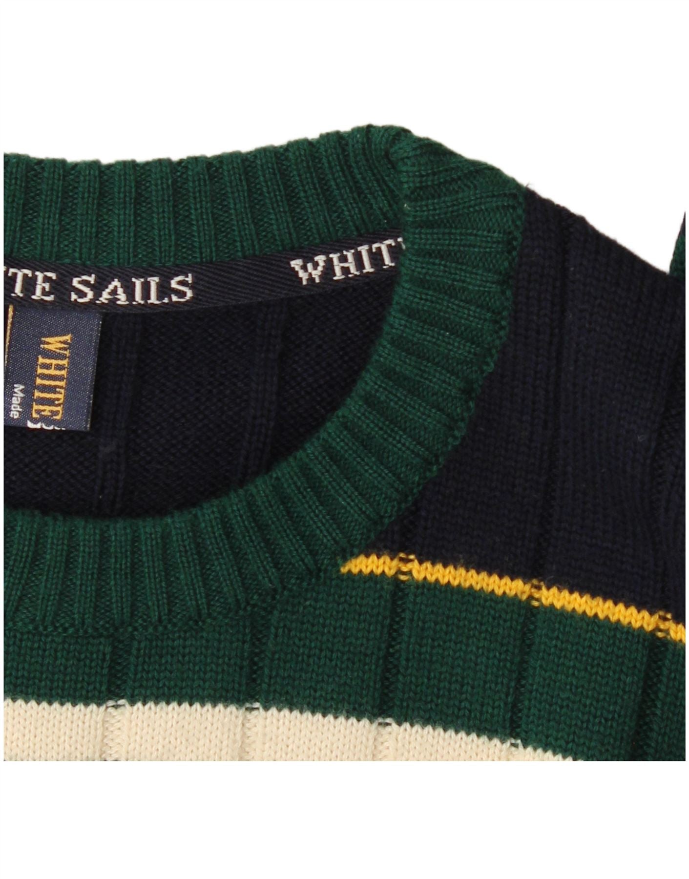 - AI beskrivelse: Denne White Sails herre sweater med rund hals er lavet af et behageligt strikstof. Den har en klassisk rund halsudskæring og lange ærmer. Den almindelige pasform sikrer komfort og brugervenlighed. Fed marineblå, grønne, hvide og gule striber skaber et slående retromønster. Et subtilt broderet logo tilføjer et signaturpræg til denne pullover-stil.