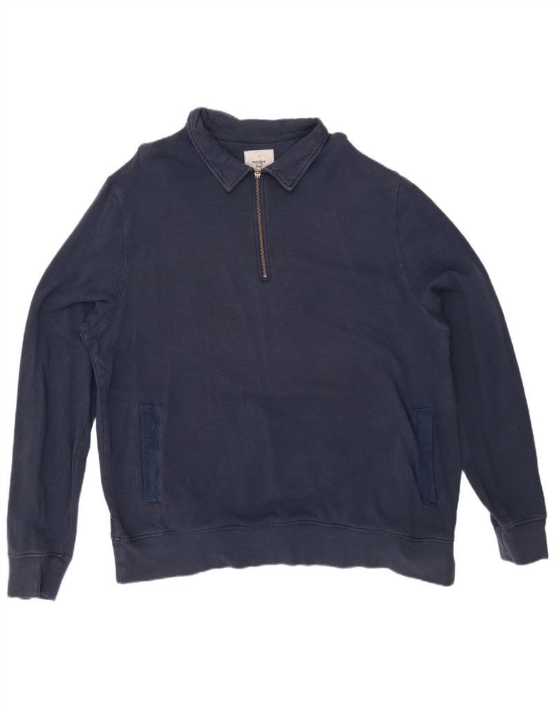 HVID TING Herre Polo Neck Sweatshirt Jumper 2XL Navy Blue Bomuld