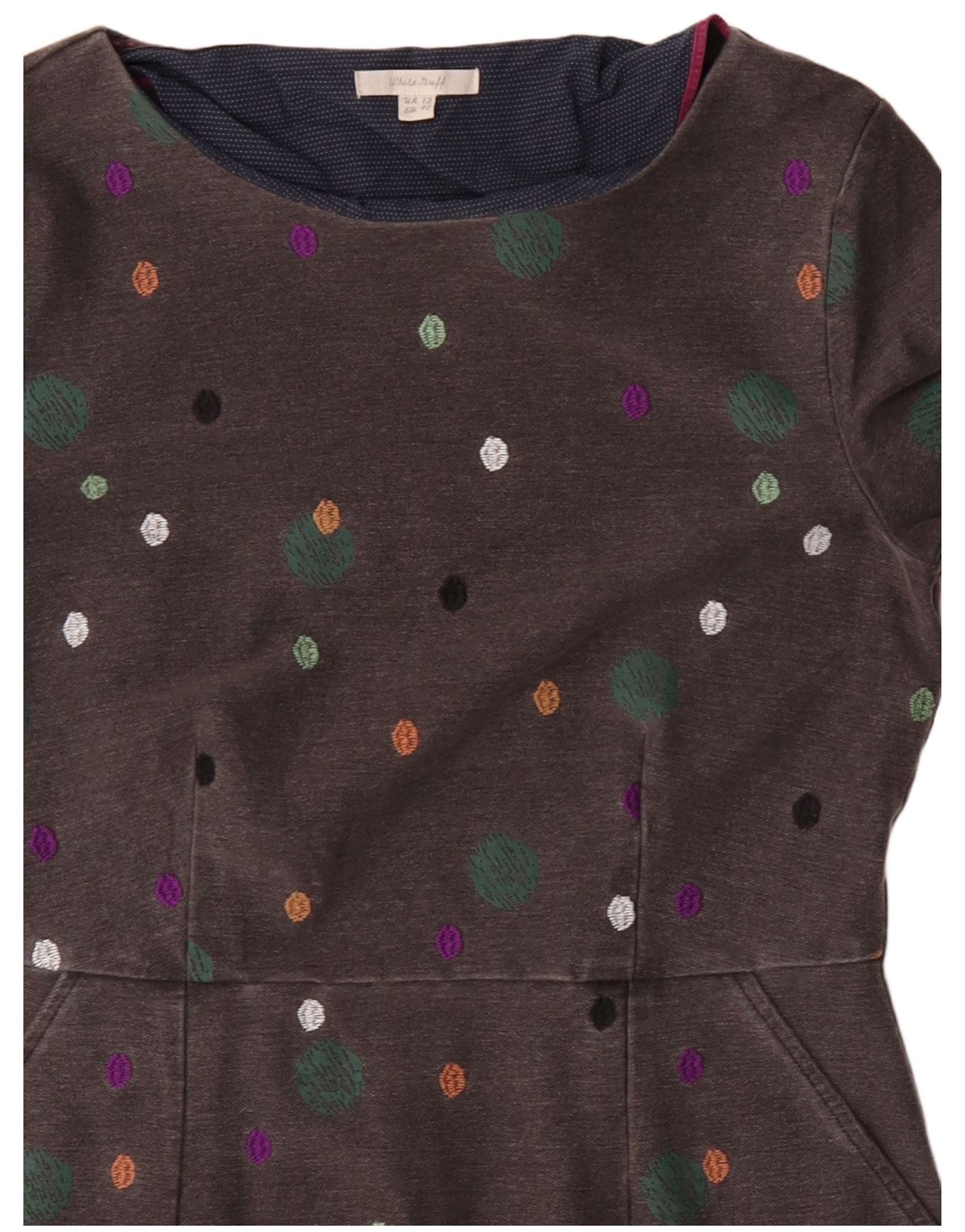 WHITE STUFF Kvinder 3/4-ærmet kappekjole UK 12 mellemgrå plettet