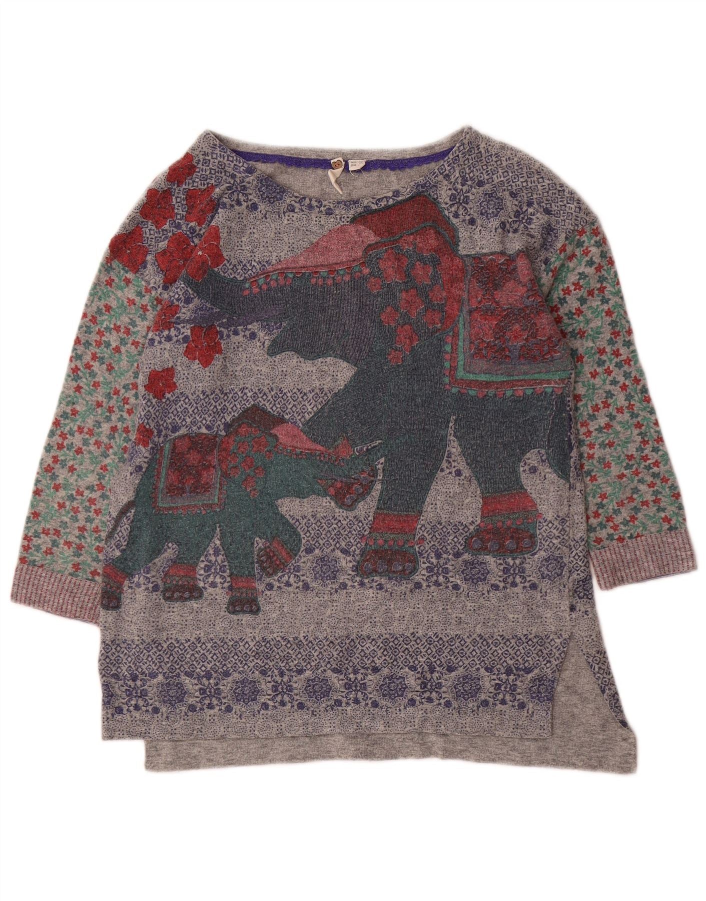 WHITE STUFF Dame grafisk bådhals sweater UK 10 Small Grey