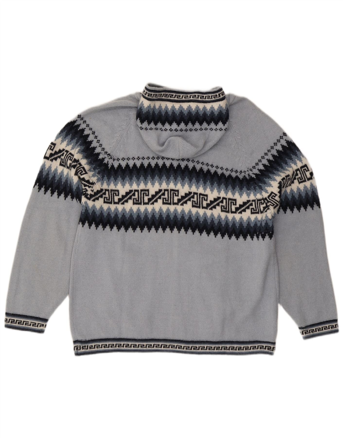 Dame hætte cardigan sweater UK 16 Large Blue Geometric