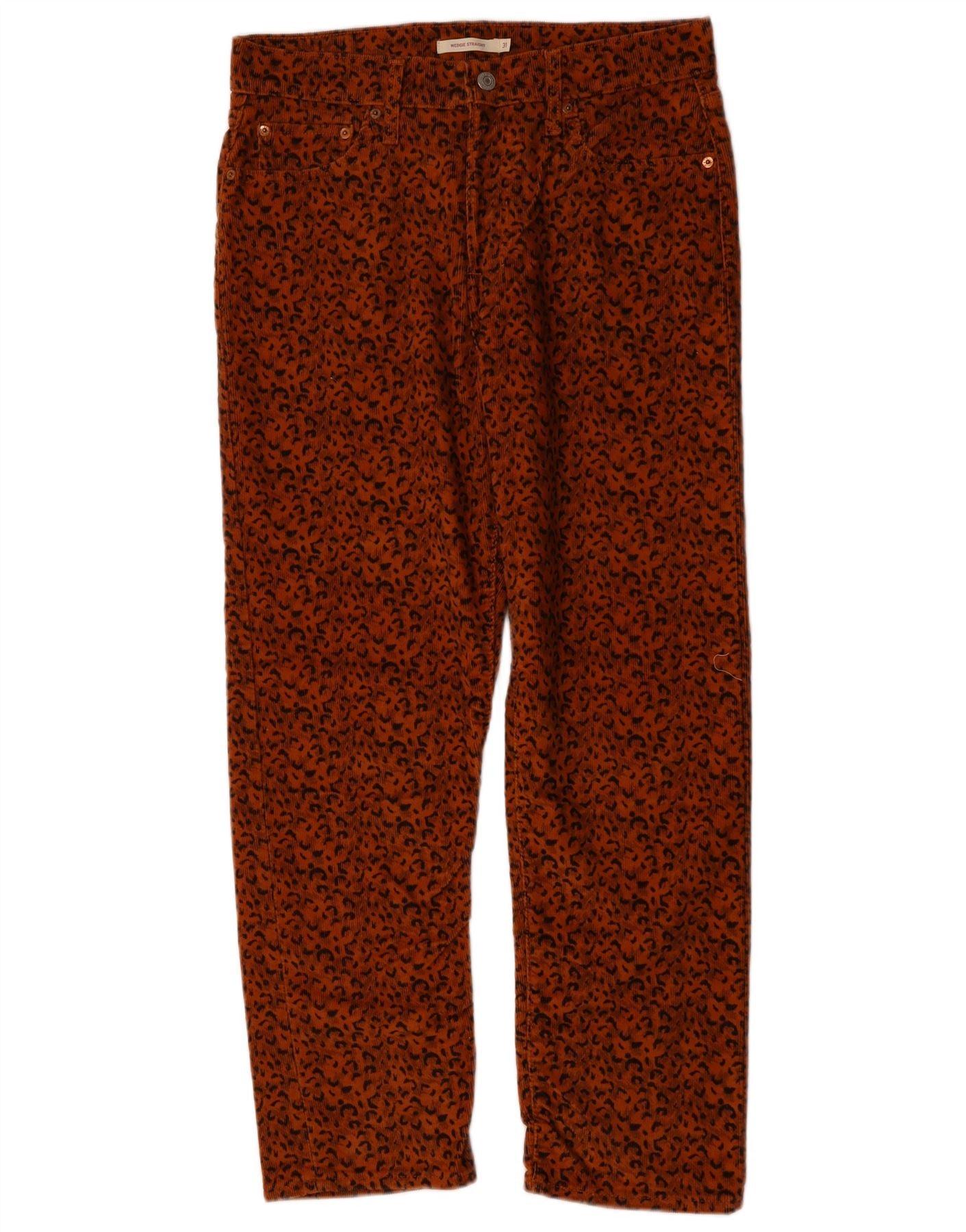 - AI beskrivelse: Disse Levi's fløjlsbukser til kvinder er lavet af blødt fløjlsstof i en rig orange nuance. De har et slående dyreprintmønster overalt. Prikkede accenter tilføjer et strejf af detaljer. Bukserne har en behagelig normal pasform med et lige bensnit. En knaplukning sikrer taljen. Praktiske lommer fuldender designet og blander stil med brugbarhed.