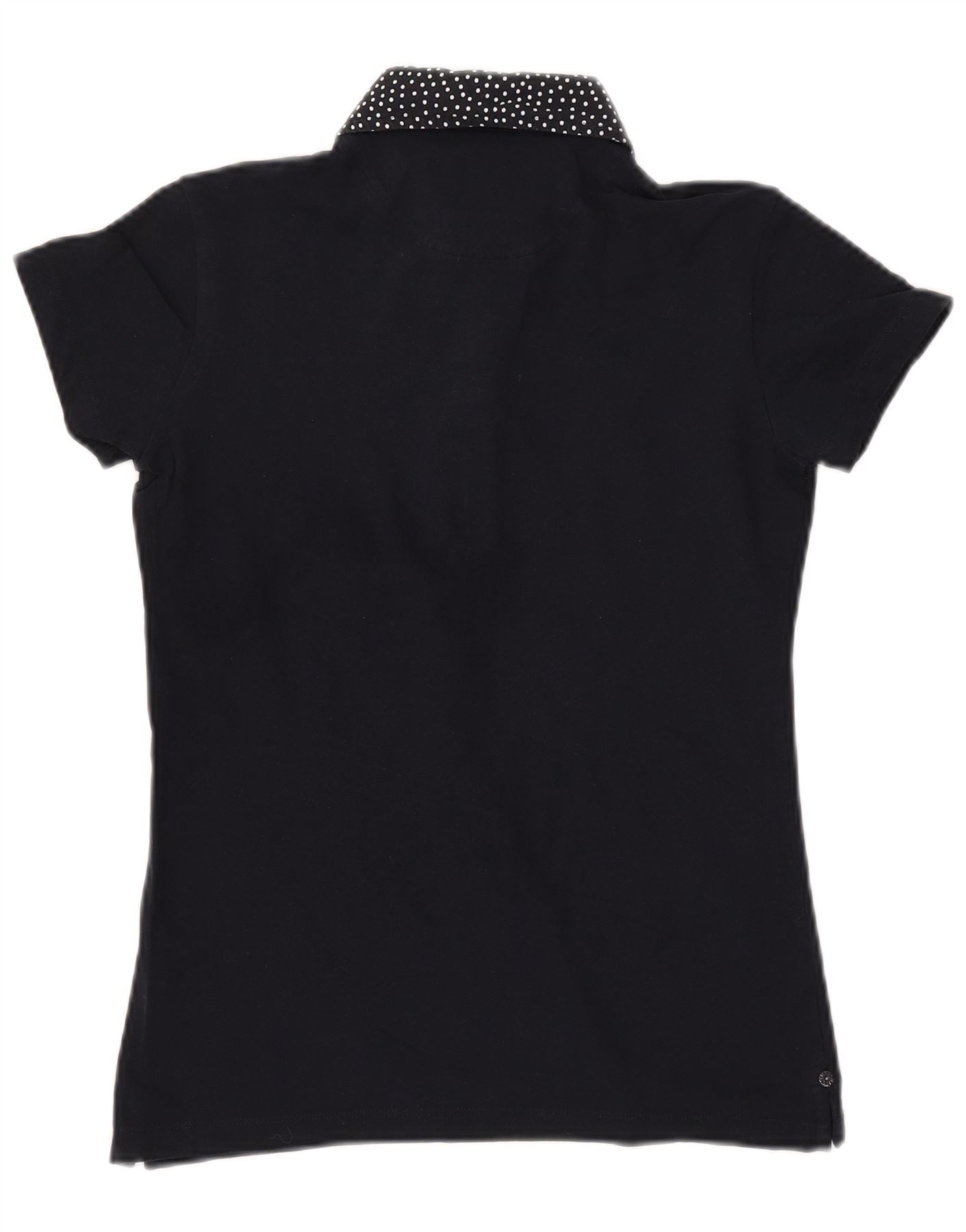 WOOLRICH Dame Slim Fit Polo Shirt UK 12 Mellem marineblå plettet bomuld