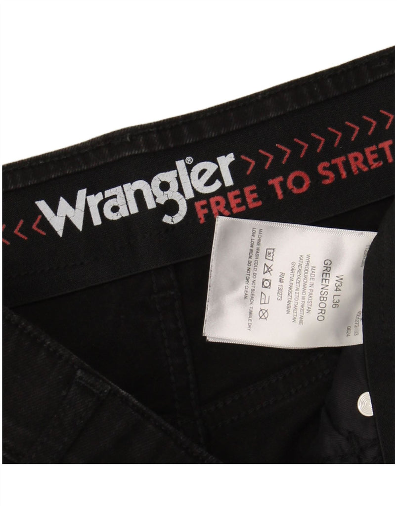 WRANGLER Mens Greensboro Straight Jeans W34 L36 Black Cotton