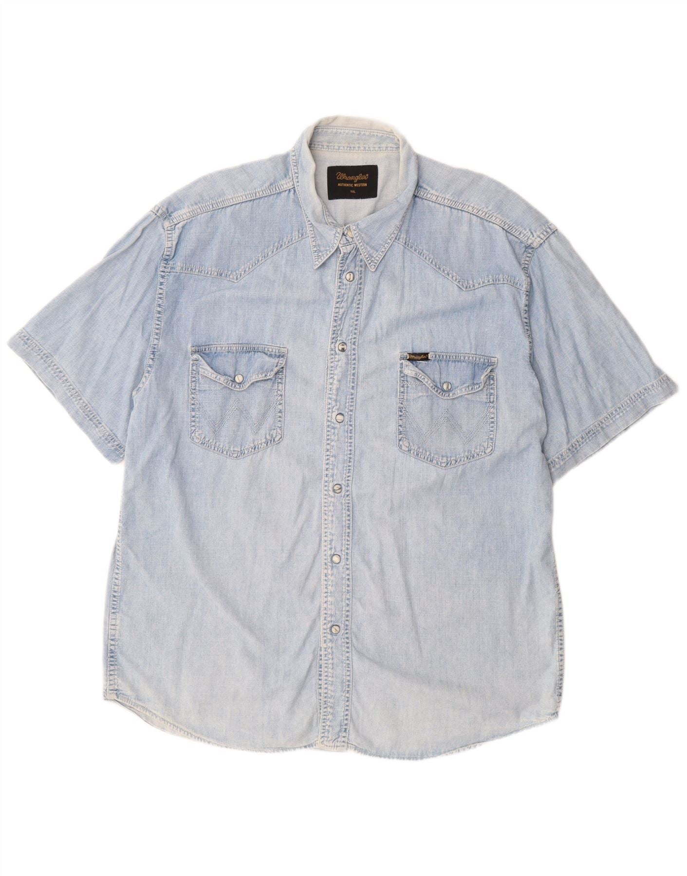 WRANGLER Kortærmet denimskjorte til mænd 2XL Blå