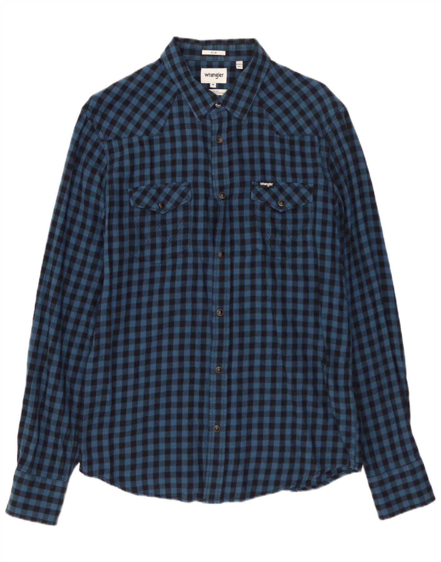 WRANGLER Herre Slim Flannel Shirt Medium Blue Gingham Cotton