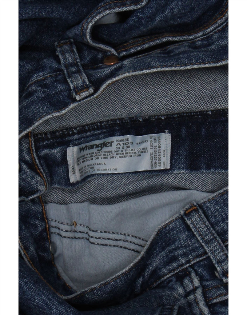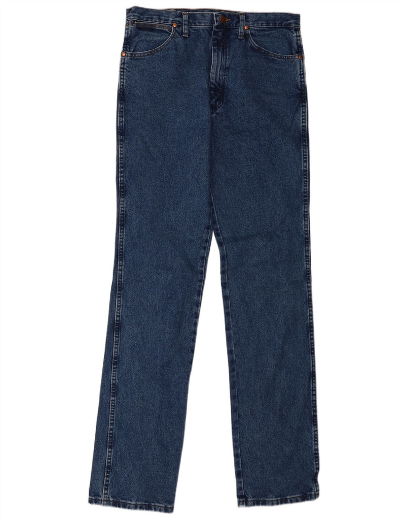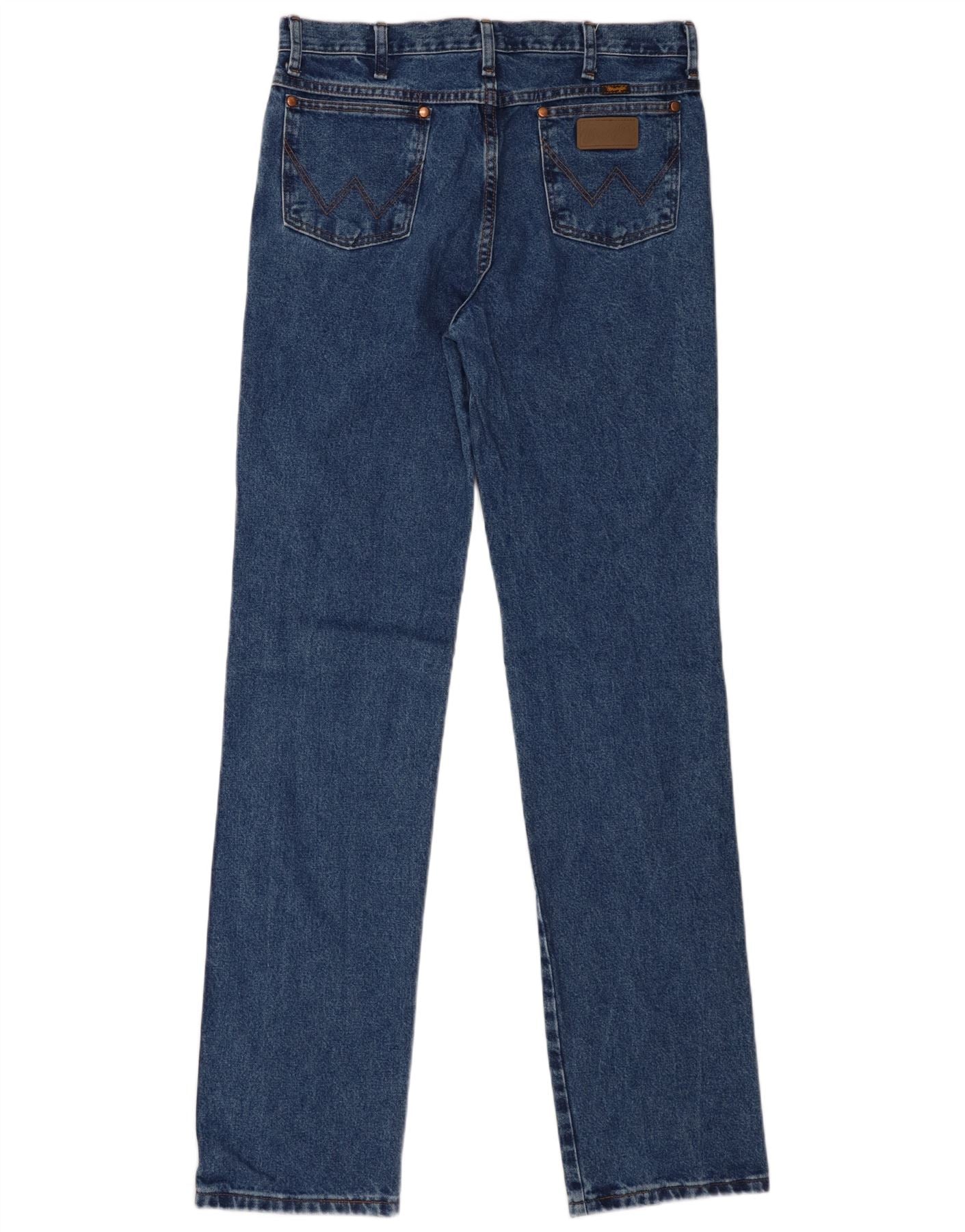- AI Description: This Wrangler mens straight jeans are crafted from durable blue denim, made from 100 percent cotton. They feature a classic straight leg cut for a timeless silhouette. A secure zip closure ensures a neat front. The regular fit provides comfort and ease of movement. Practical pockets and a subtle brand logo complete this classic design.