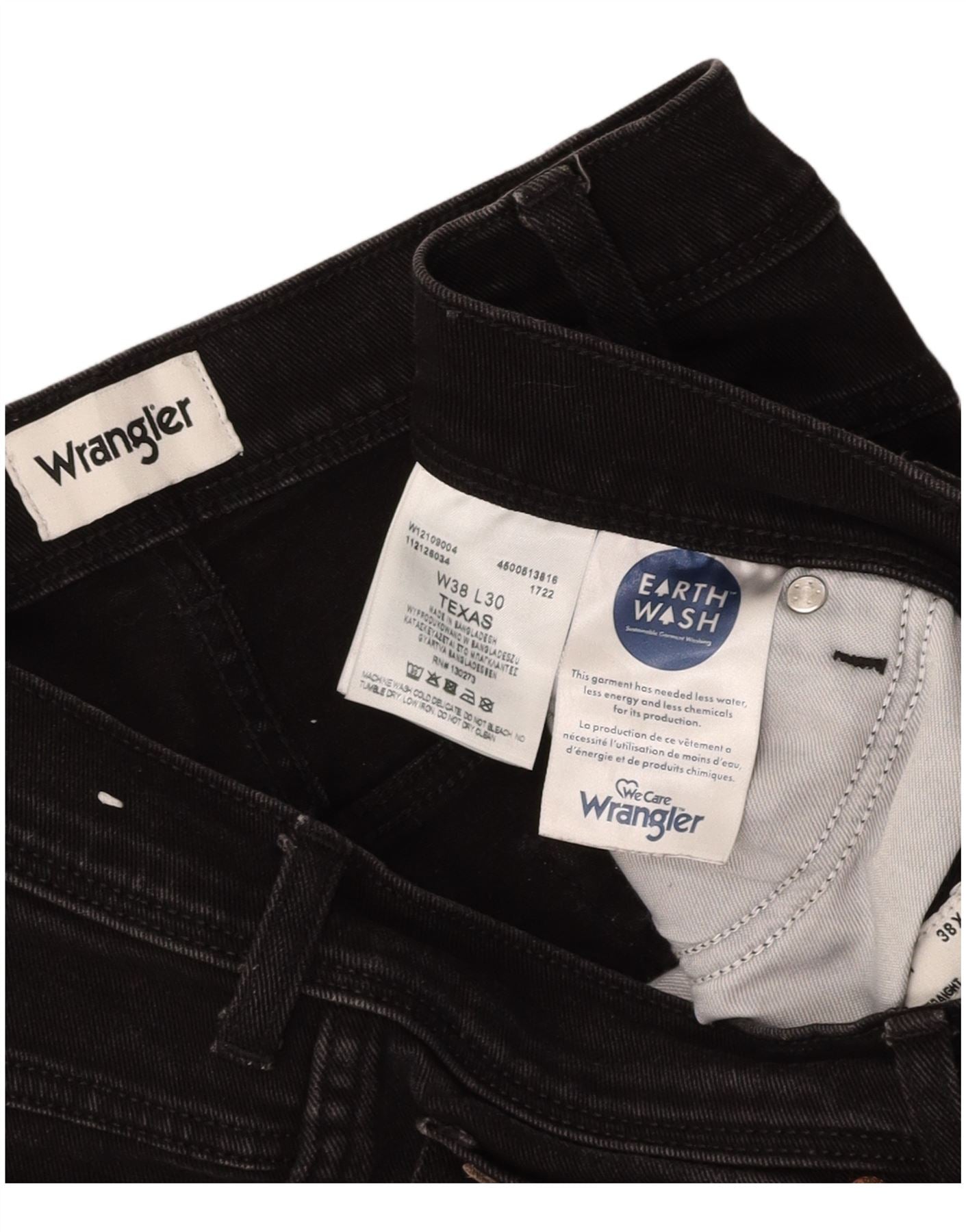 WRANGLER Herre Texas Straight Jeans W38 L30 Sort Bomuld