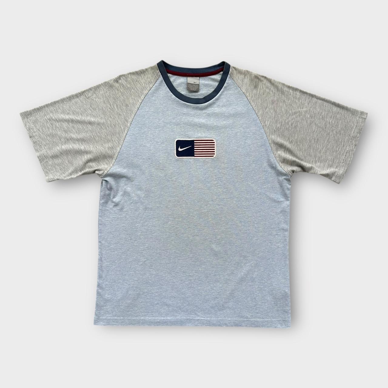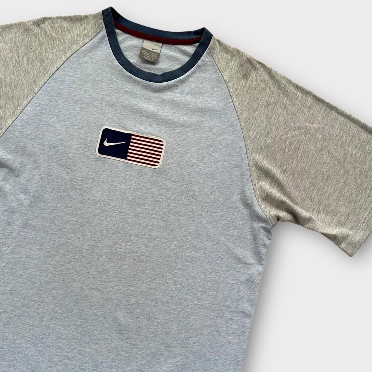 Tidlige 2000'er Y2K Nike USA broderet flag-t-shirt i blå og grå