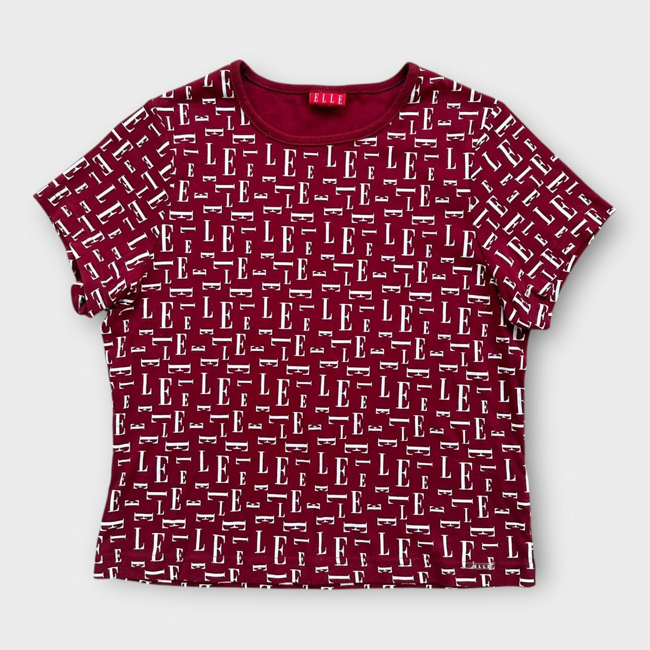 Vintage tidlige 2000'er Y2K Elle monogram over det hele print top i rød og hvid