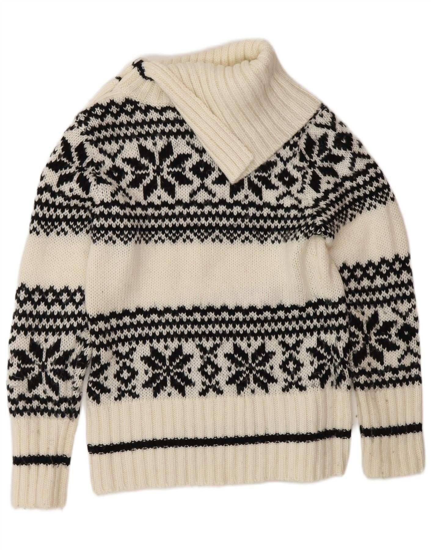 Yessica Womens Snowflake Button Neck Jumper Sweater UK 14 Medium White Wint