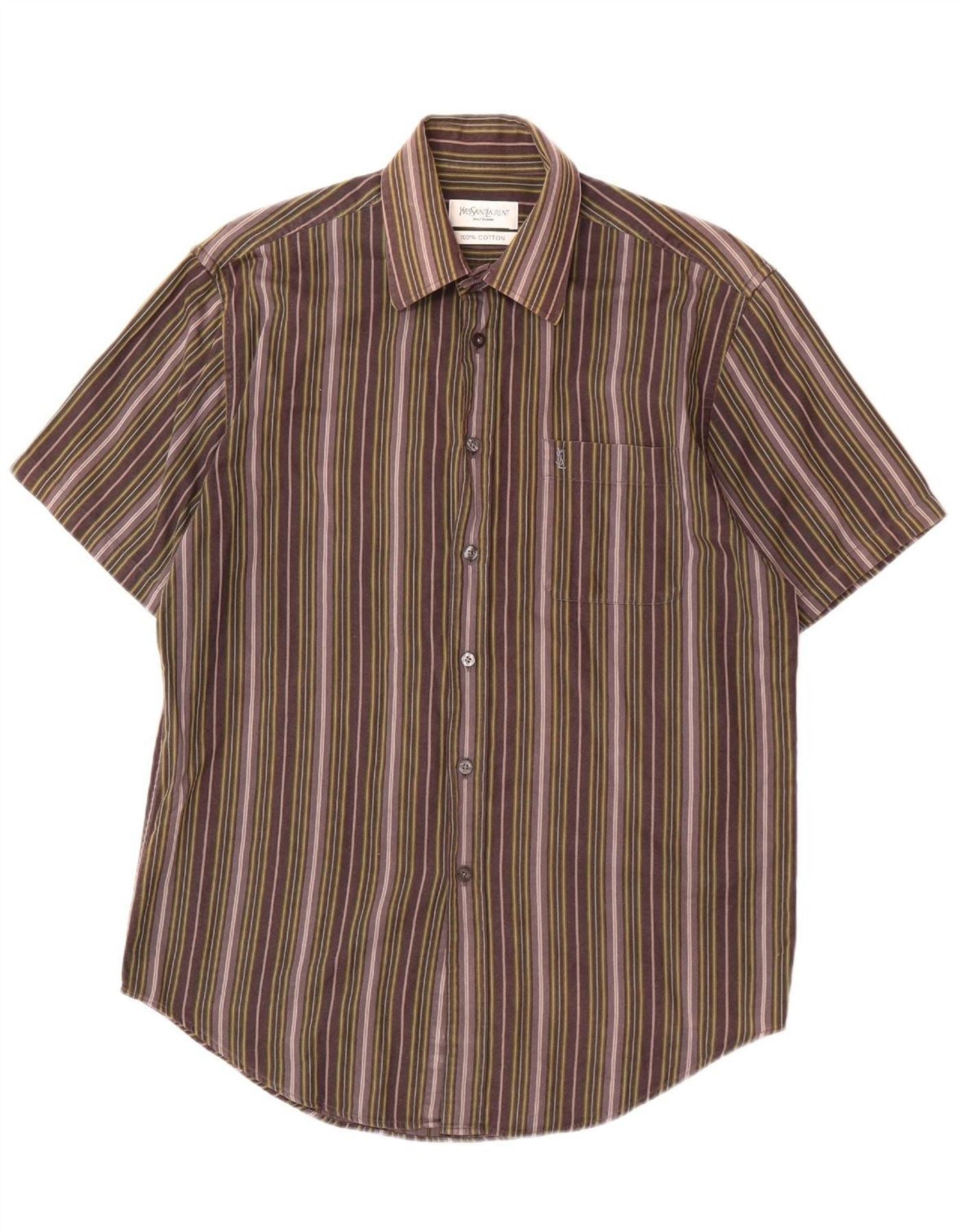YVES SAINT LAURENT Mens Short Sleeve Shirt Medium Purple Striped Cotton