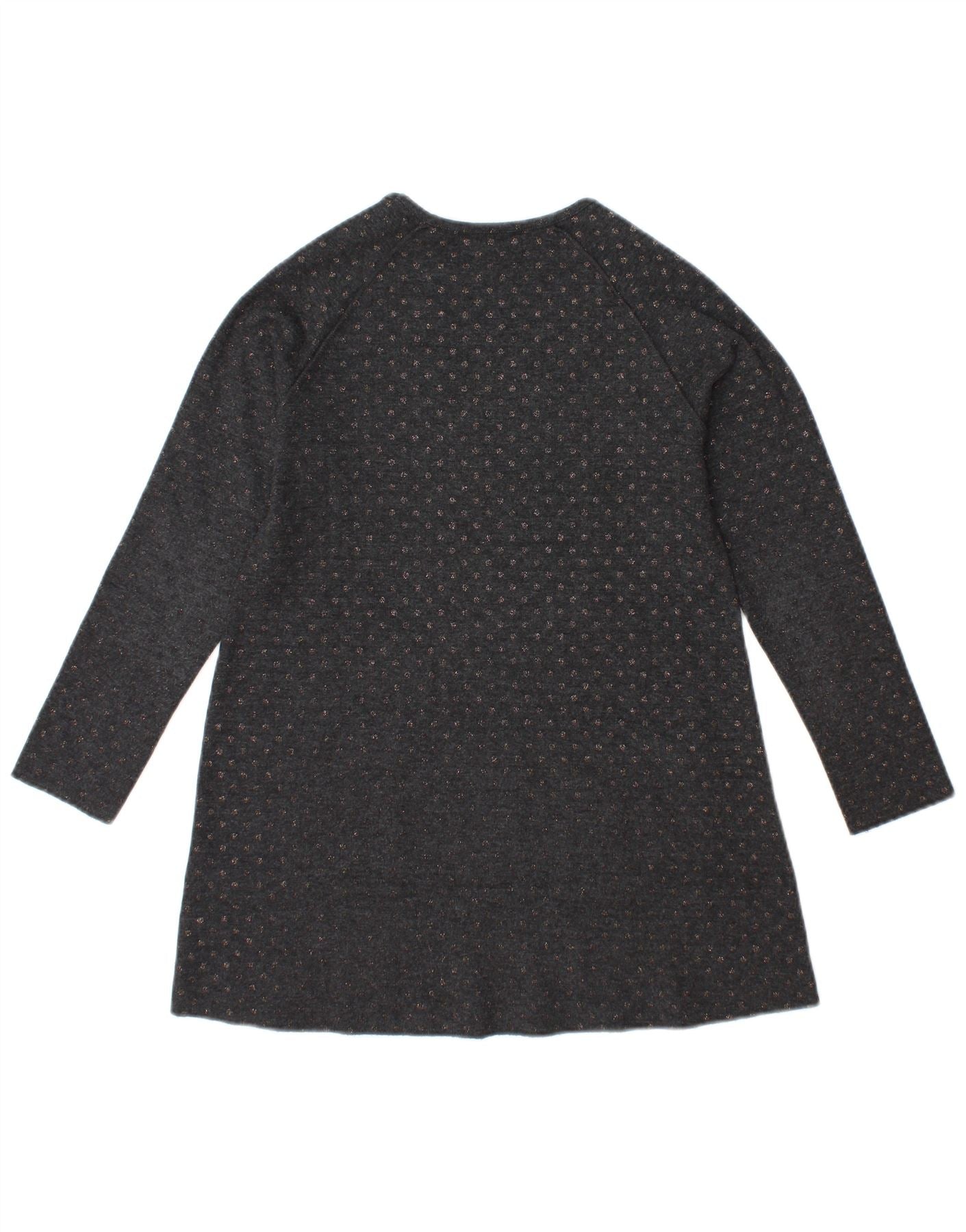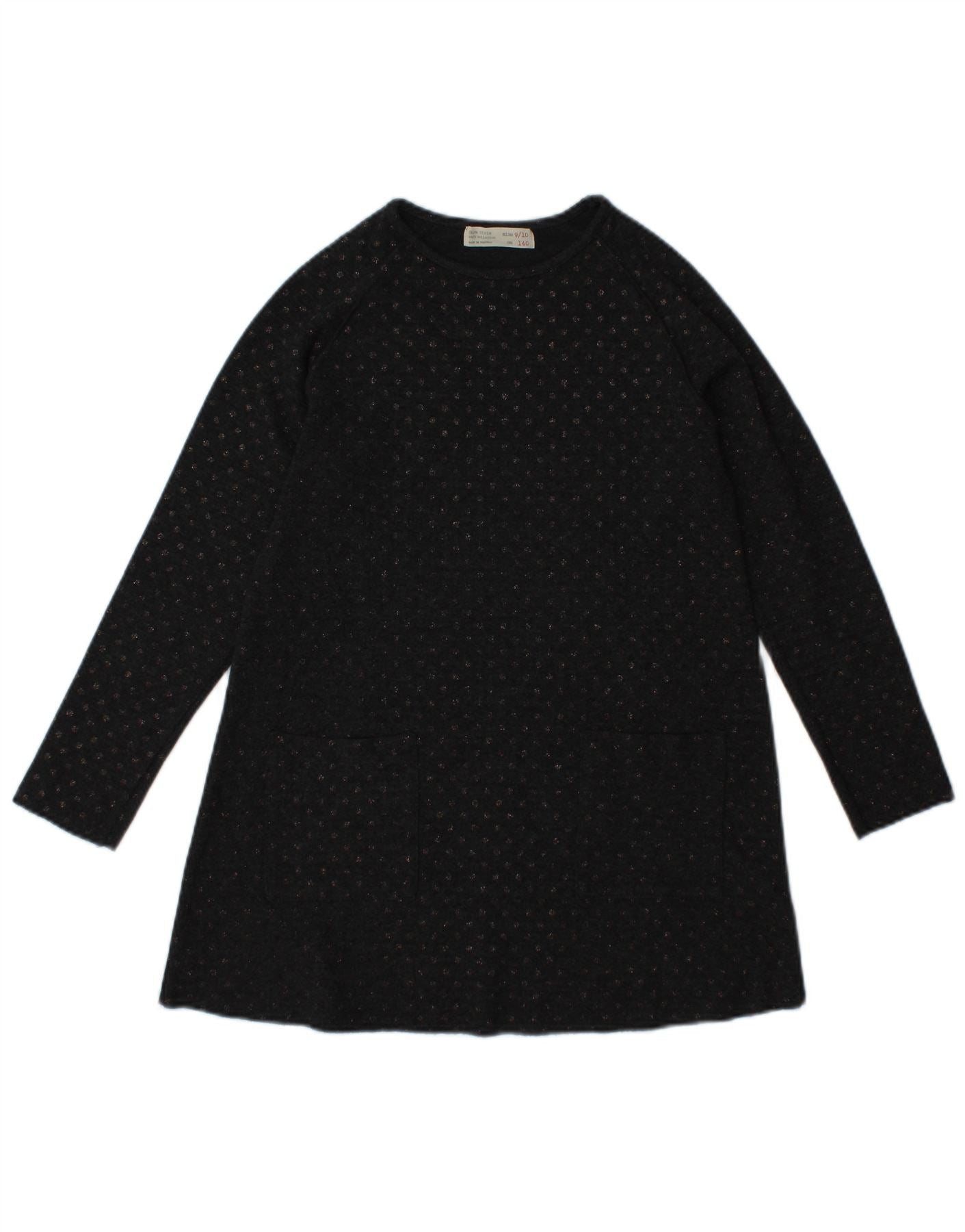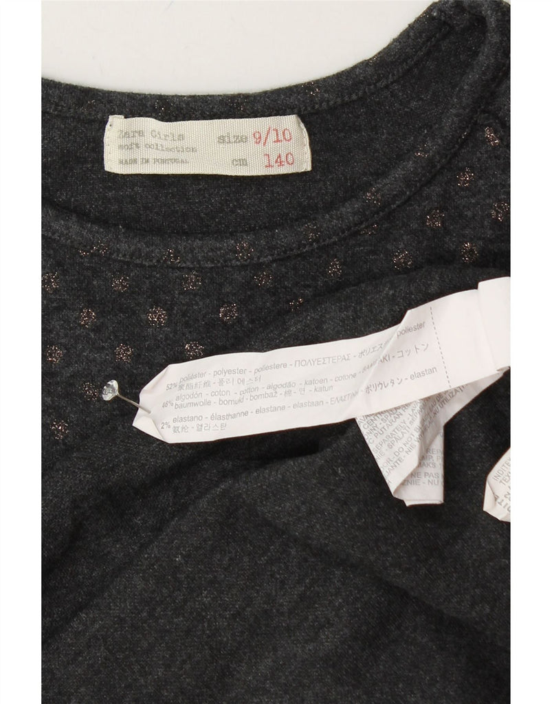 ZARA Girls Long Sleeve A-Line Dress 9-10 Years Grey Spotted Polyester