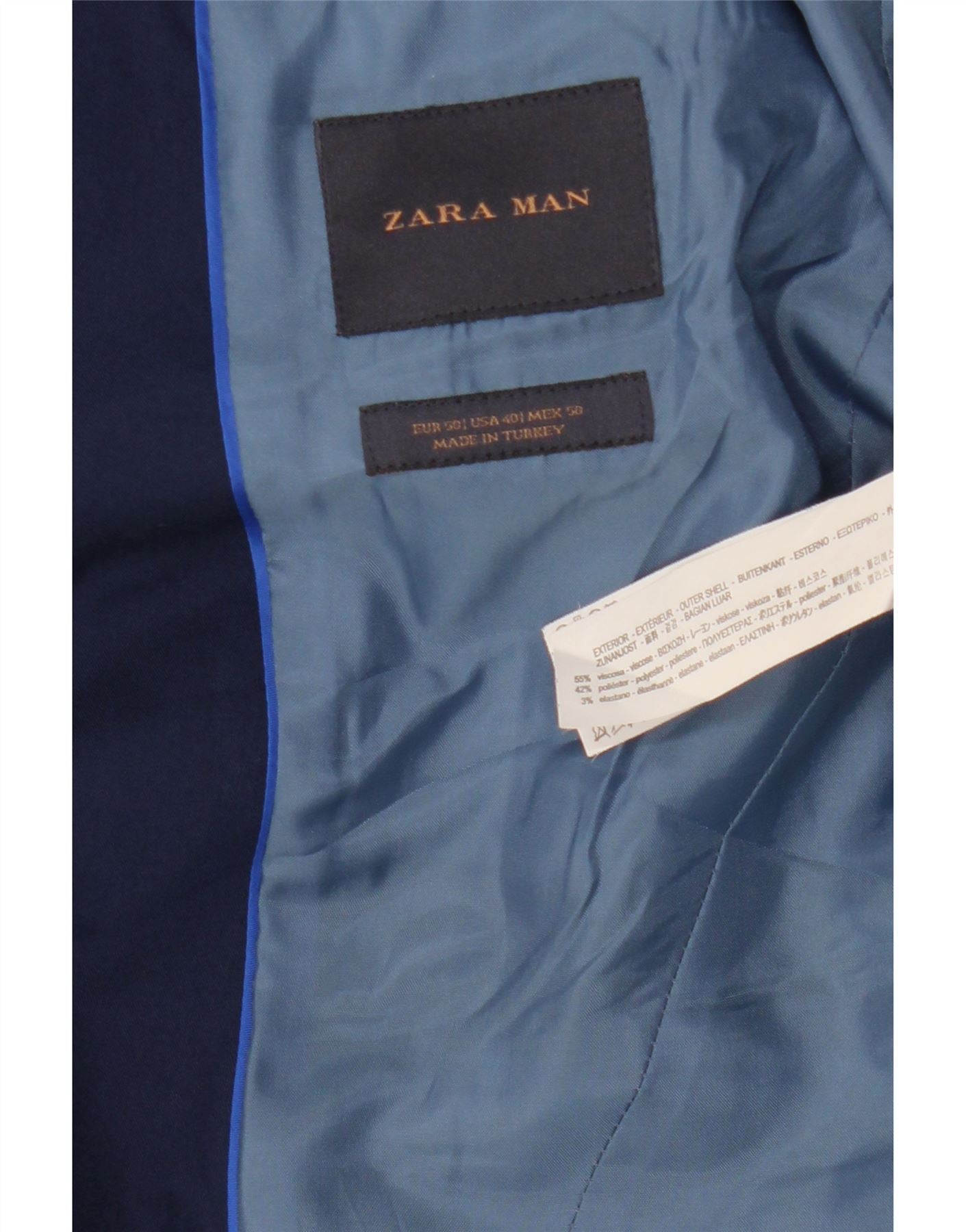 ZARA Herre 2-knaps blazerjakke EU 50 Medium Navyblå Viscose