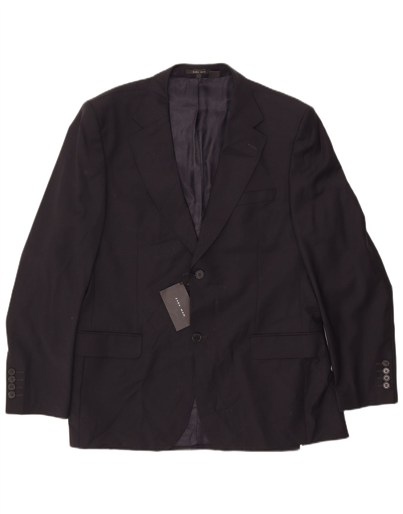 ZARA Herre 2-knaps blazerjakke EU 54 XL Marineblå Uld