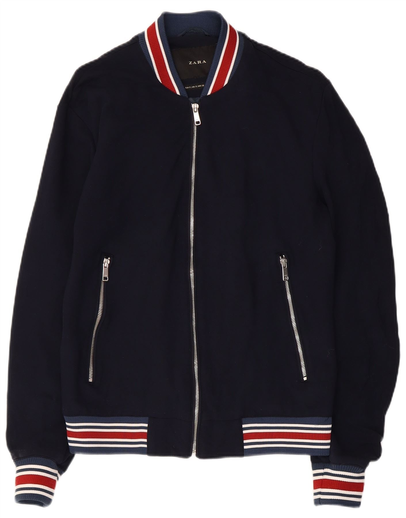 ZARA Bomberjakke til mænd UK 36 Small Navy Blue Viscose