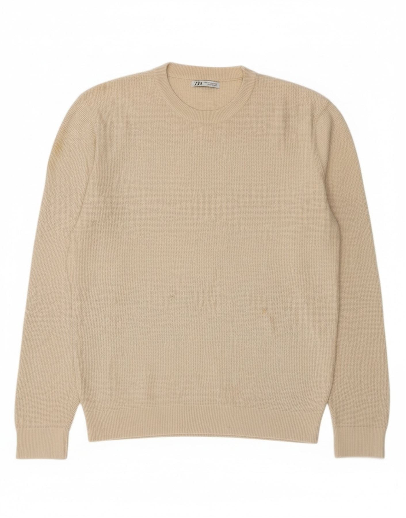 Zara Herre sweater med rund hals, medium off white bomuld