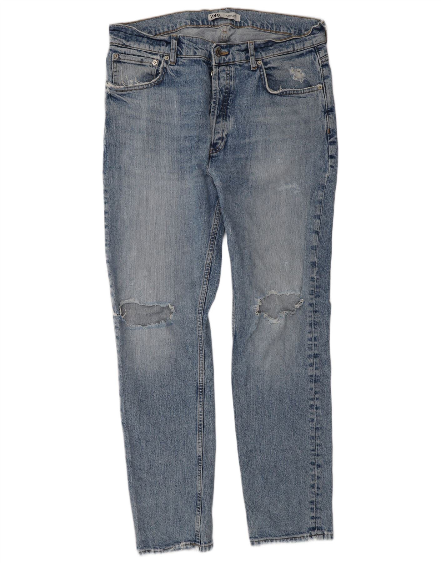 ZARA Distressed Slim Jeans til mænd EU 46 XL W36 L30 Blå