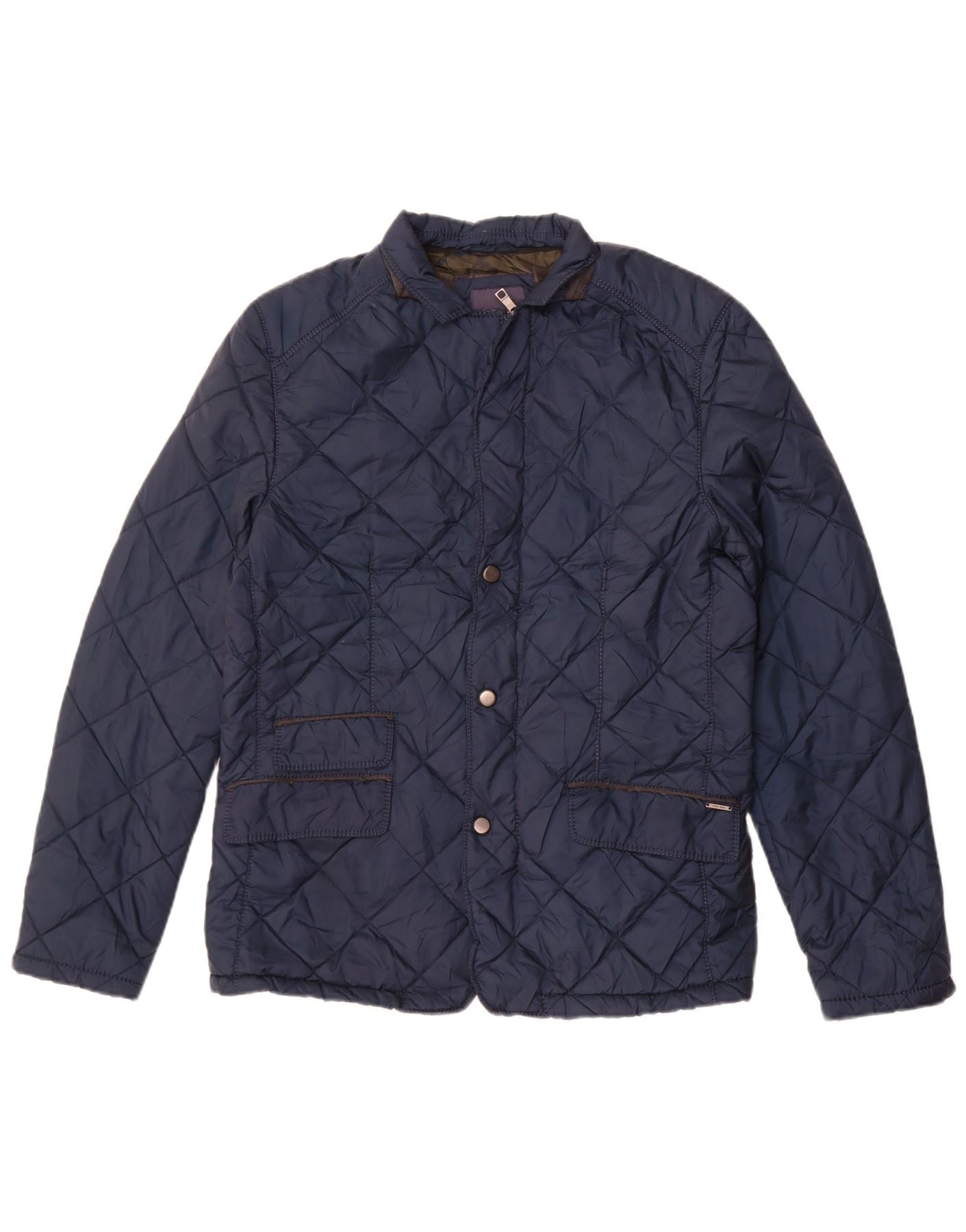 Zara Herre quiltet jakke UK 38 Medium Navy Blue Polyester
