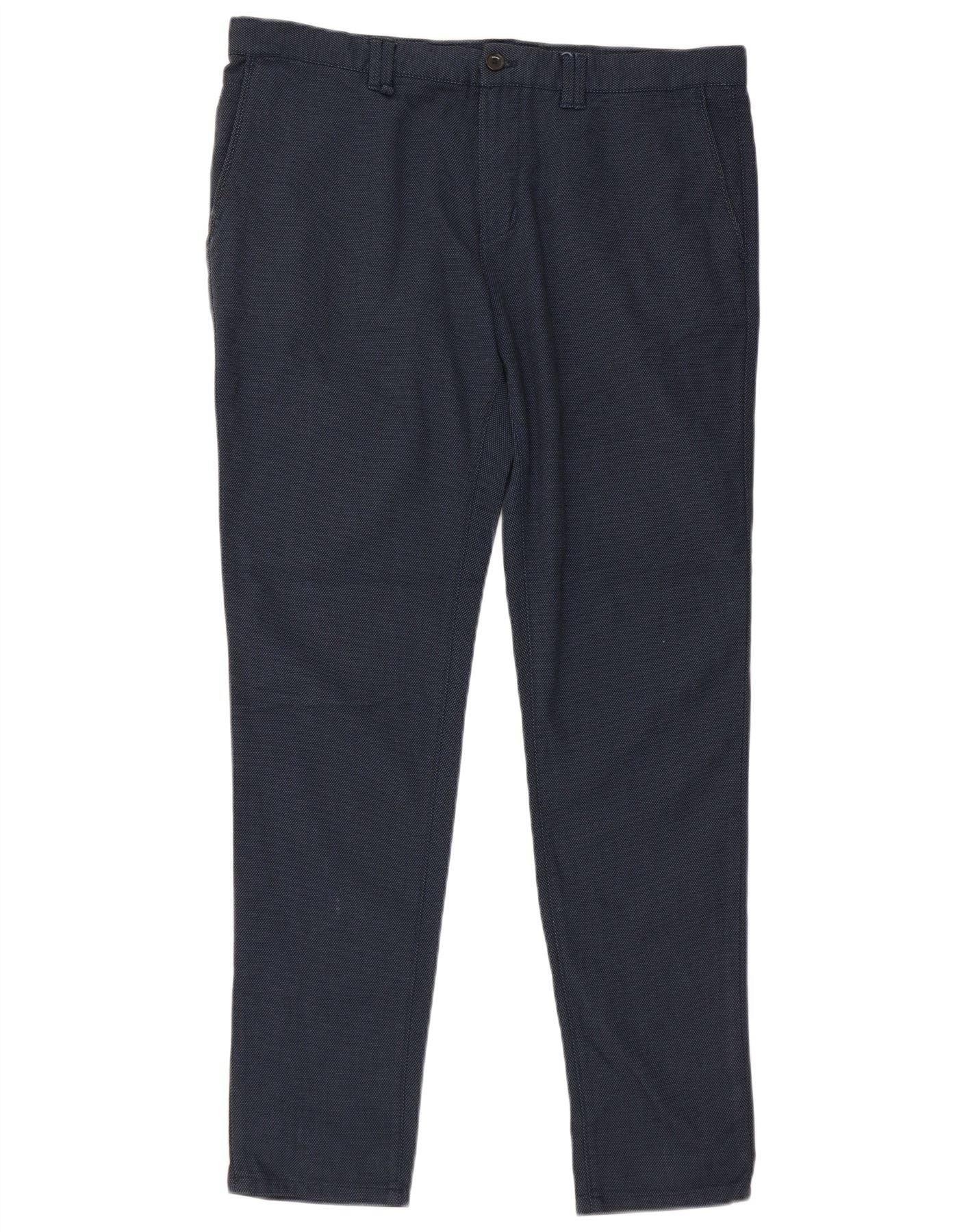 ZARA Slim Chino-bukser til mænd EU 46 XL W36 L32 Marineblå plettet bomuld