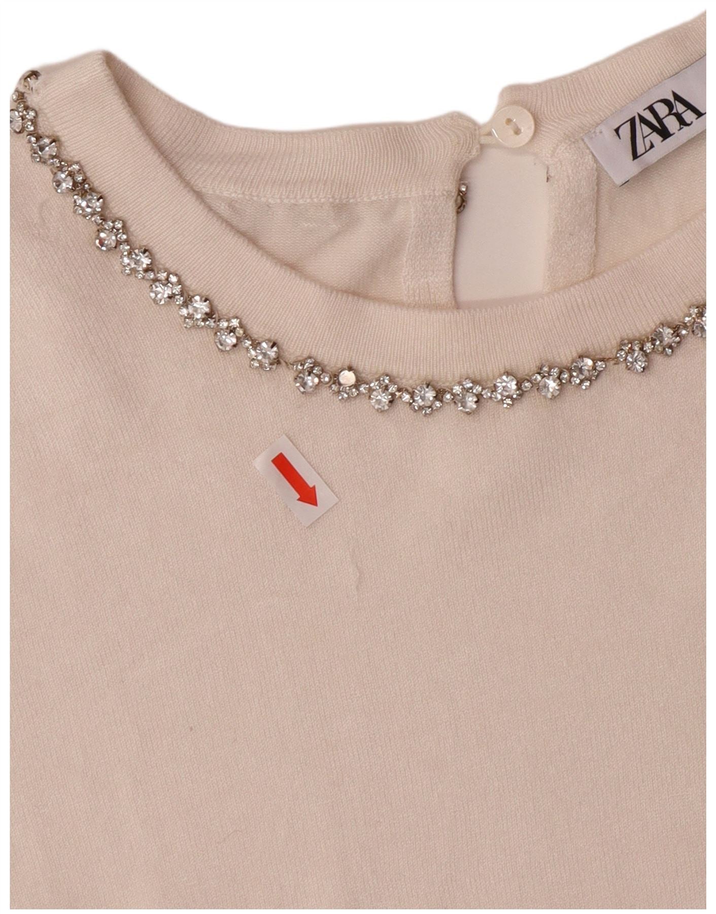 Zara Dame Boat Neck Jumper Sweater UK 10 Small Off White Viscose