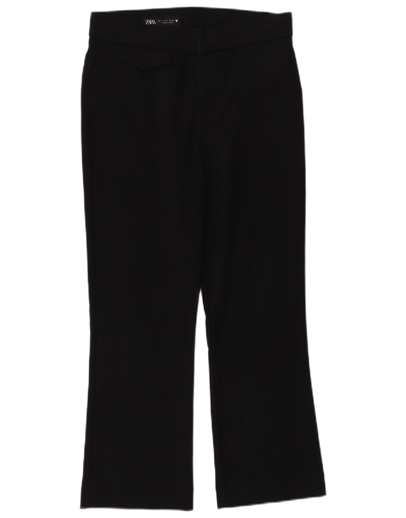 Zara Dame Bootcut Suit Bukser UK 10 Small Black Bomuld