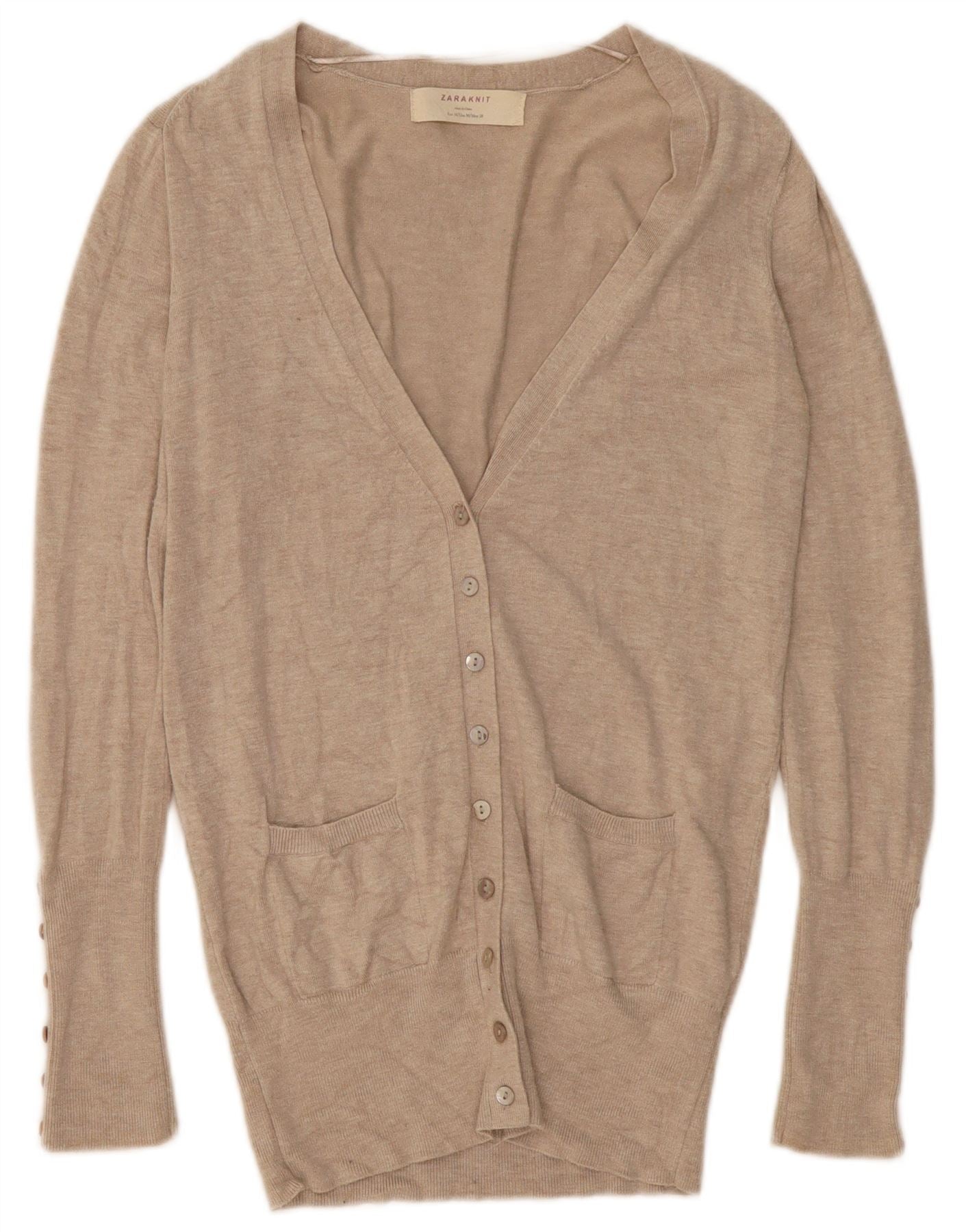 Zara Dame Cardigan Sweater UK 12 Medium Beige Rayon