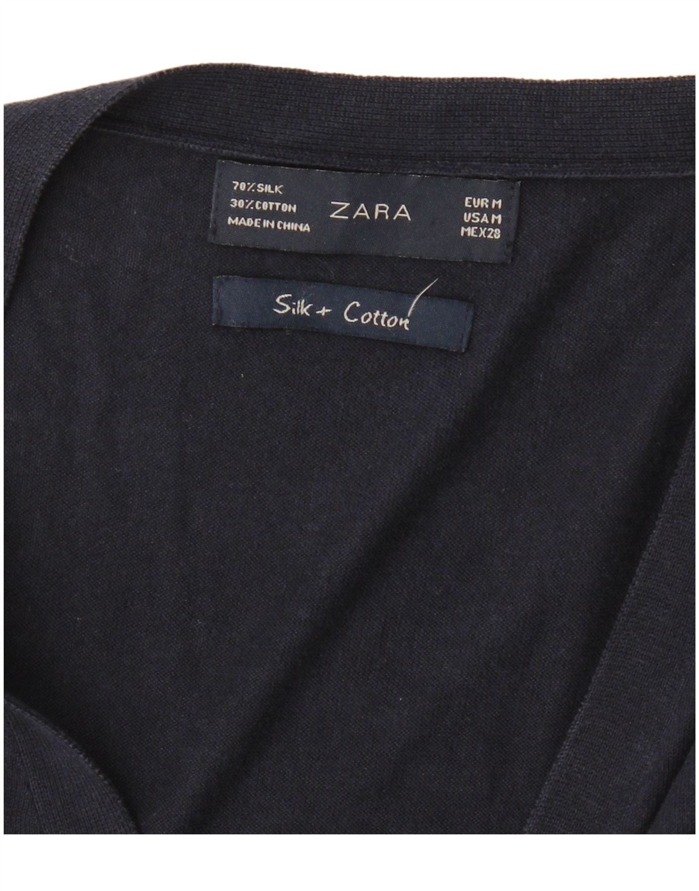 ZARA cardigan sweater til kvinder UK 12 Medium Navy Blue Silke