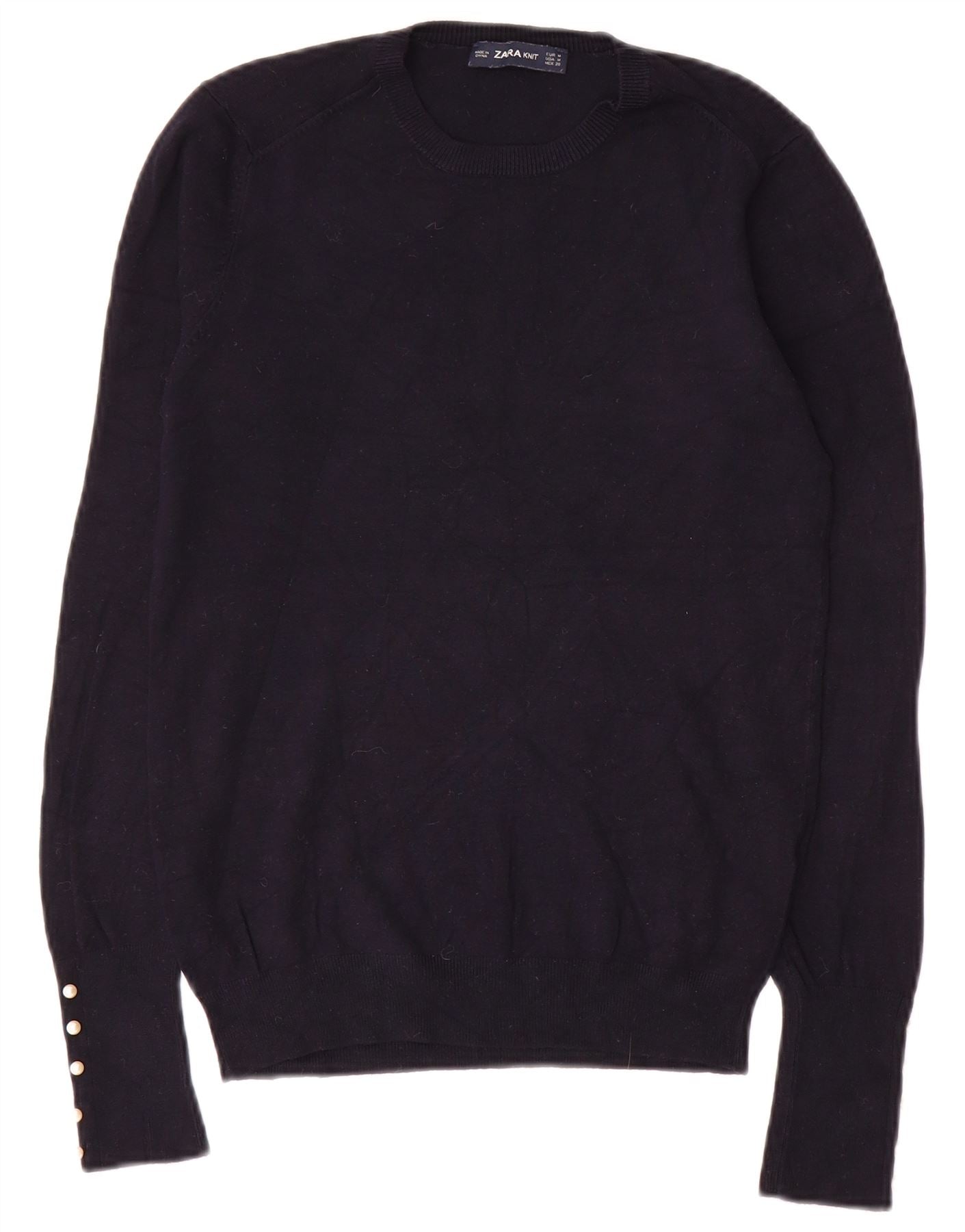 ZARA sweater med rund hals til kvinder UK 12 Medium Navy Blue