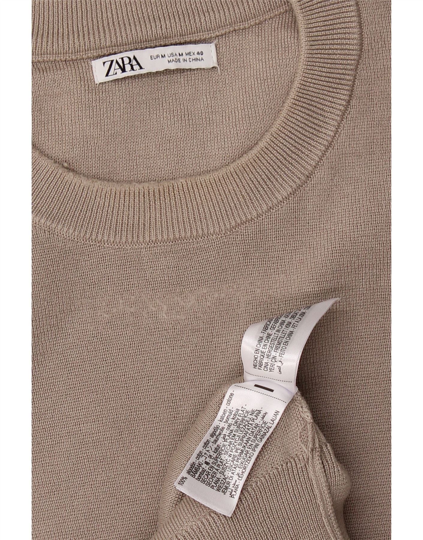 ZARA sweater med rund hals til kvinder UK 14 mellemgrå bomuld