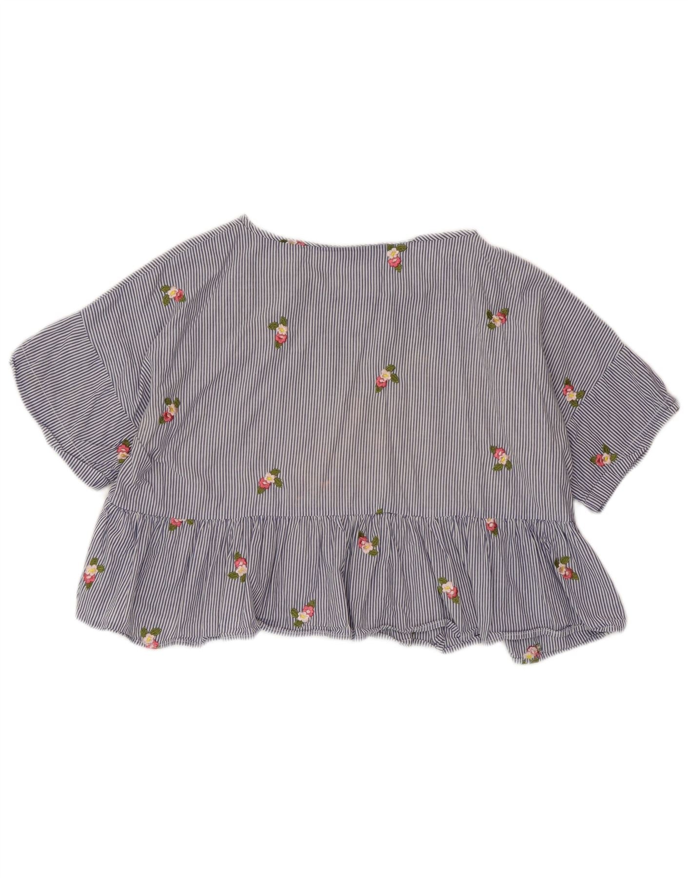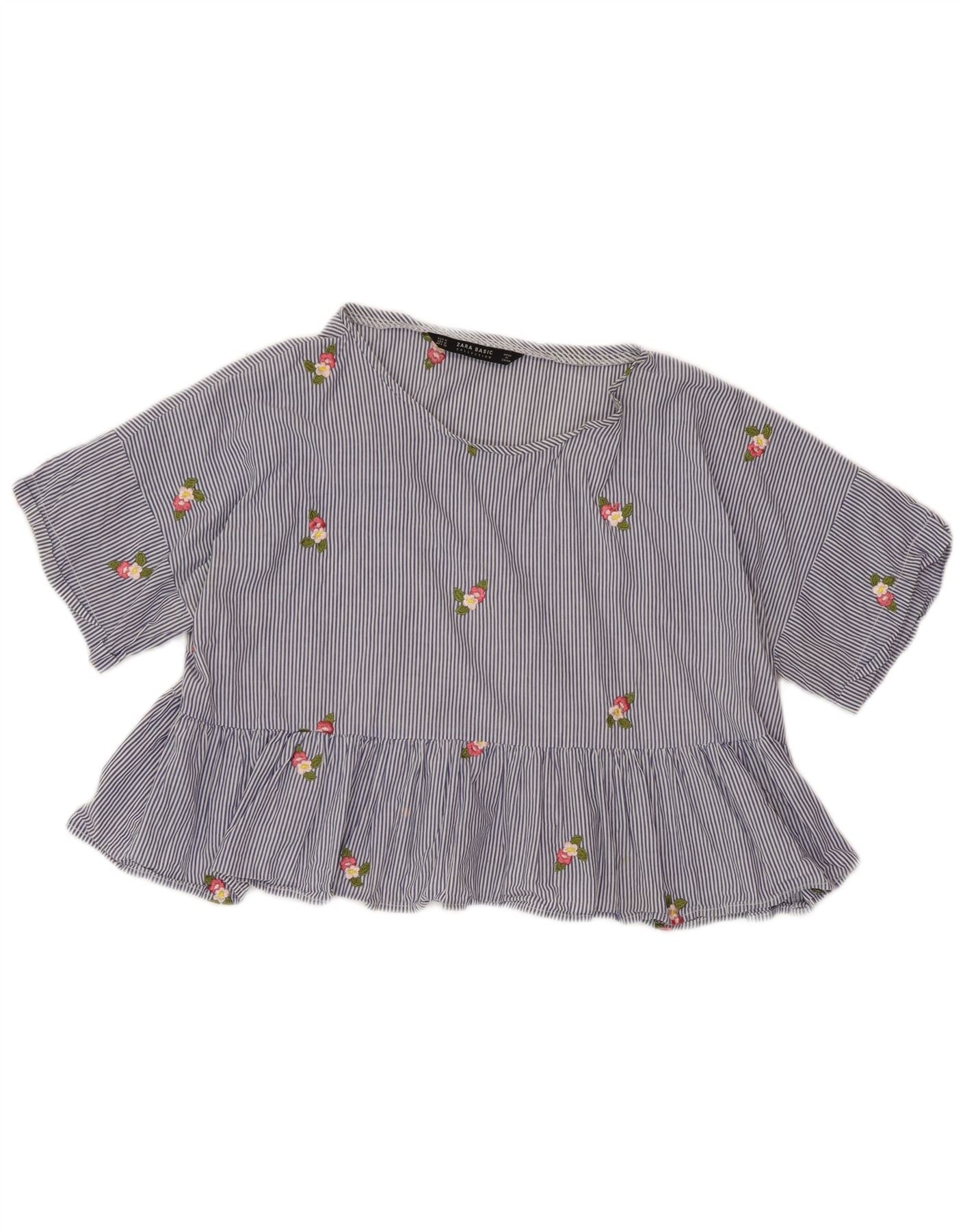 ZARA Womens Crop Bluse Top UK 14 Medium Blue Pinstripe