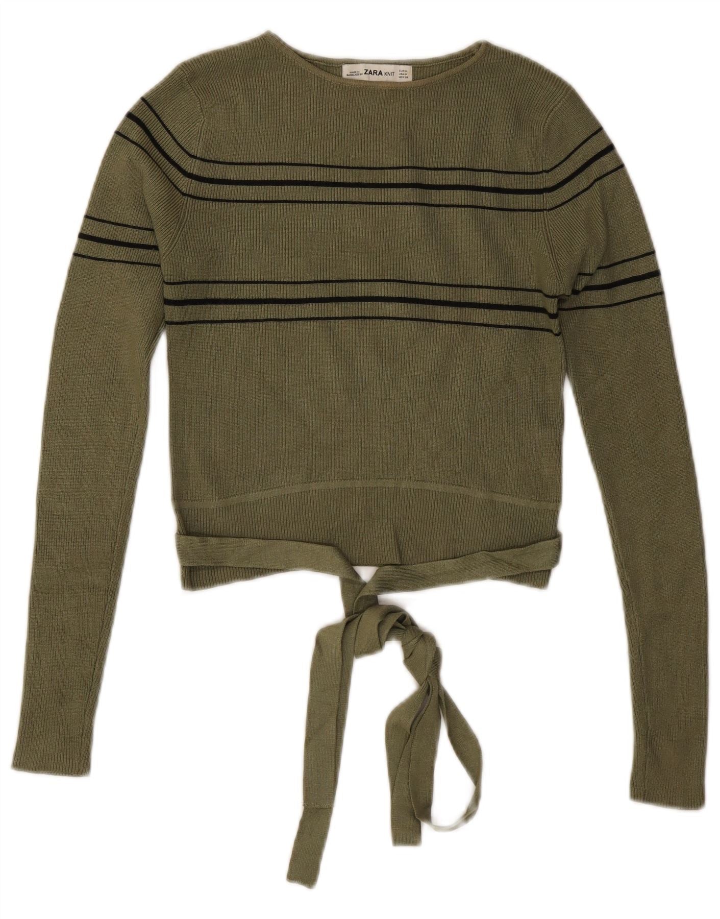 ZARA Womens Crop Boat Neck Jumper Sweater UK 12 Medium Khaki Striped