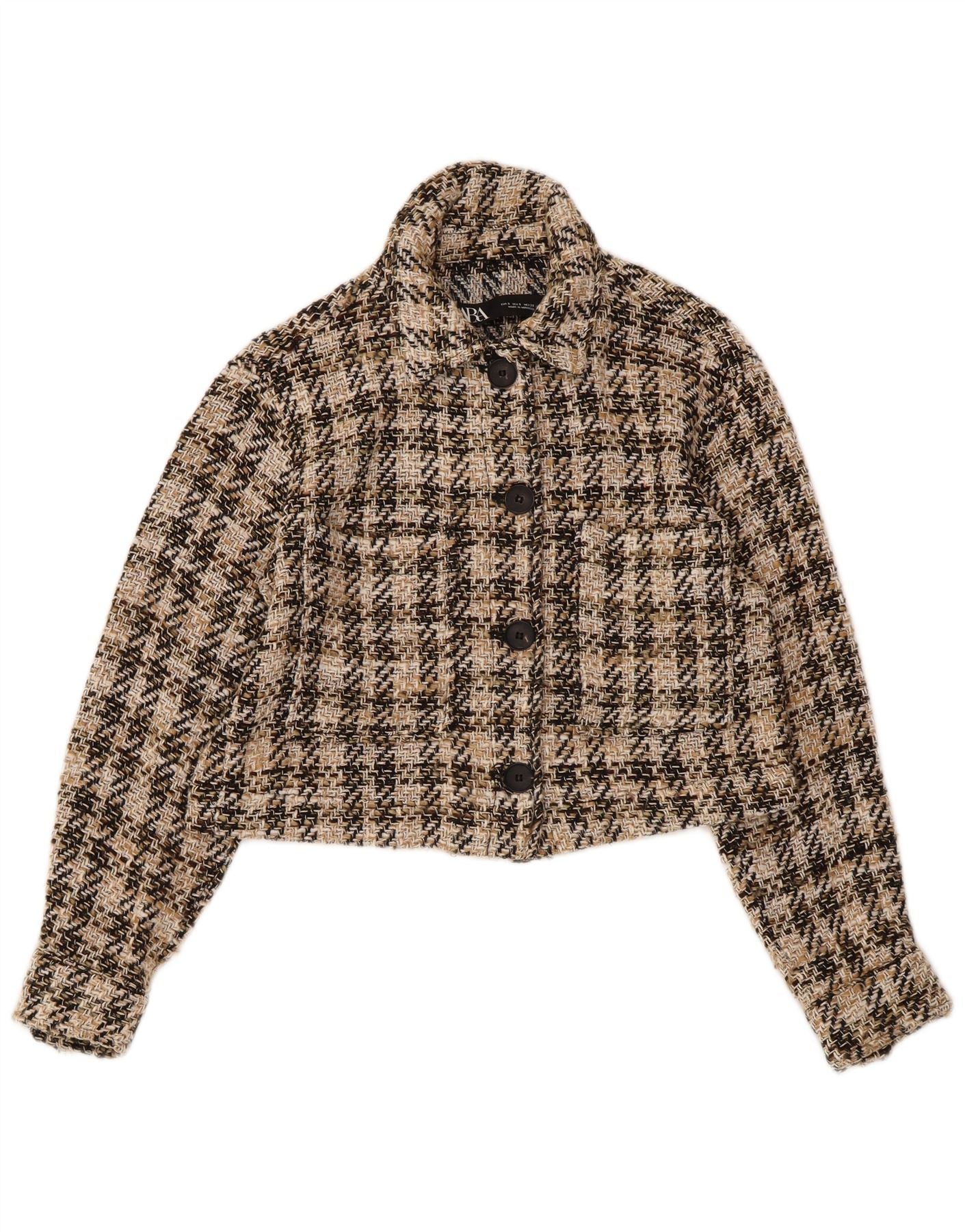 ZARA Womens Crop Bomber Jacket UK 10 Small Beige Ternet Bomuld