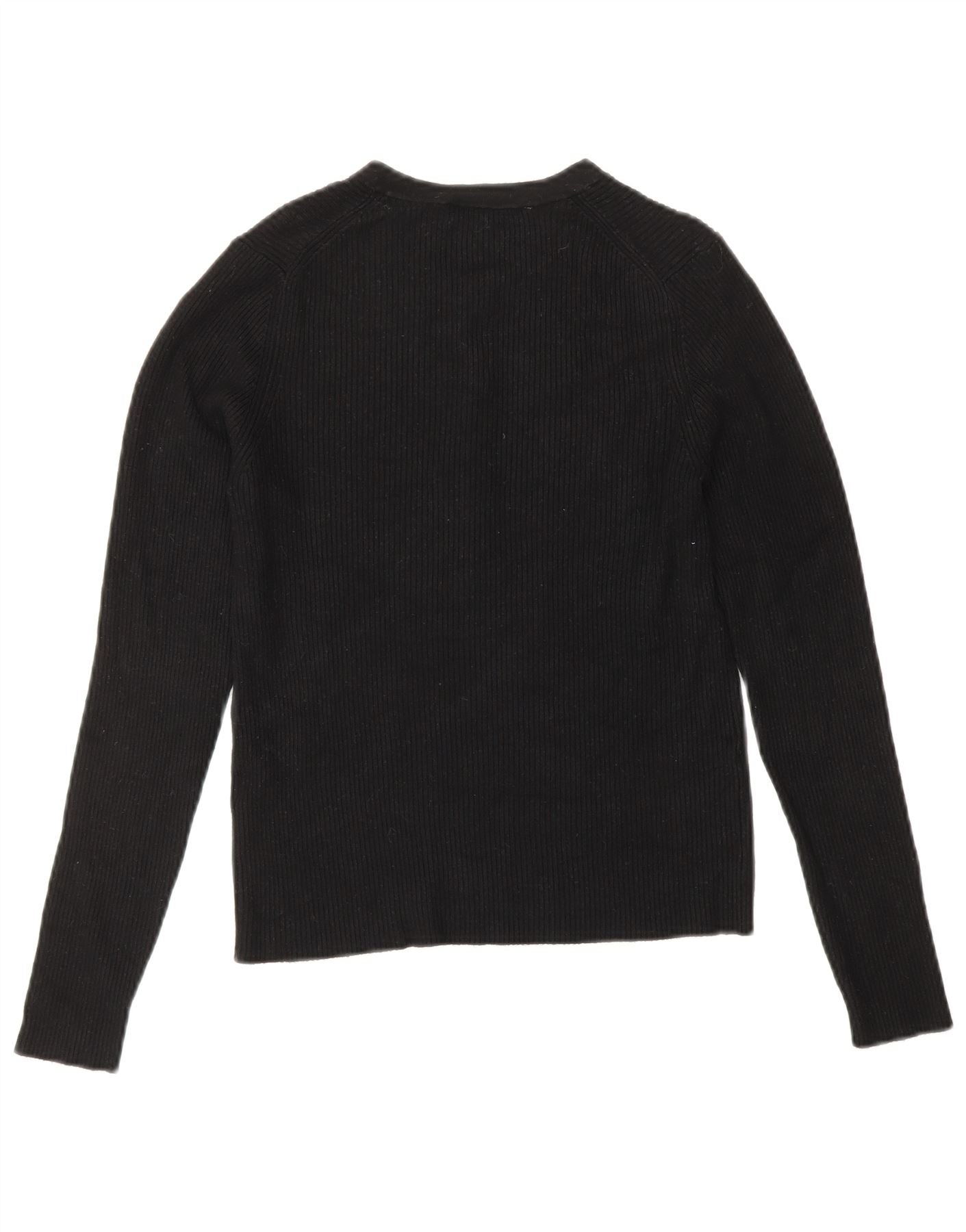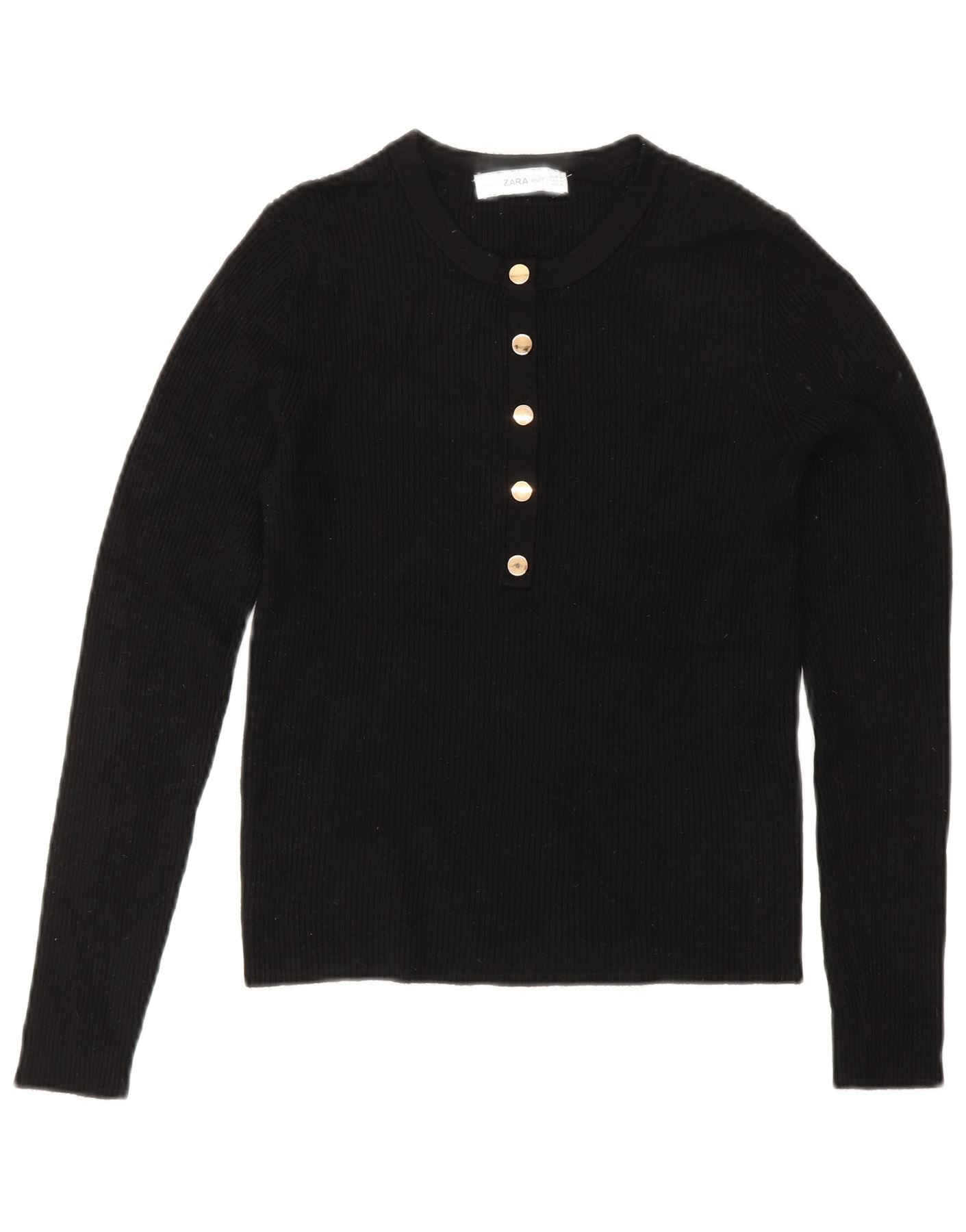 ZARA Womens Crop Button Neck Jumper Sweater UK 12 Medium Black Viscose