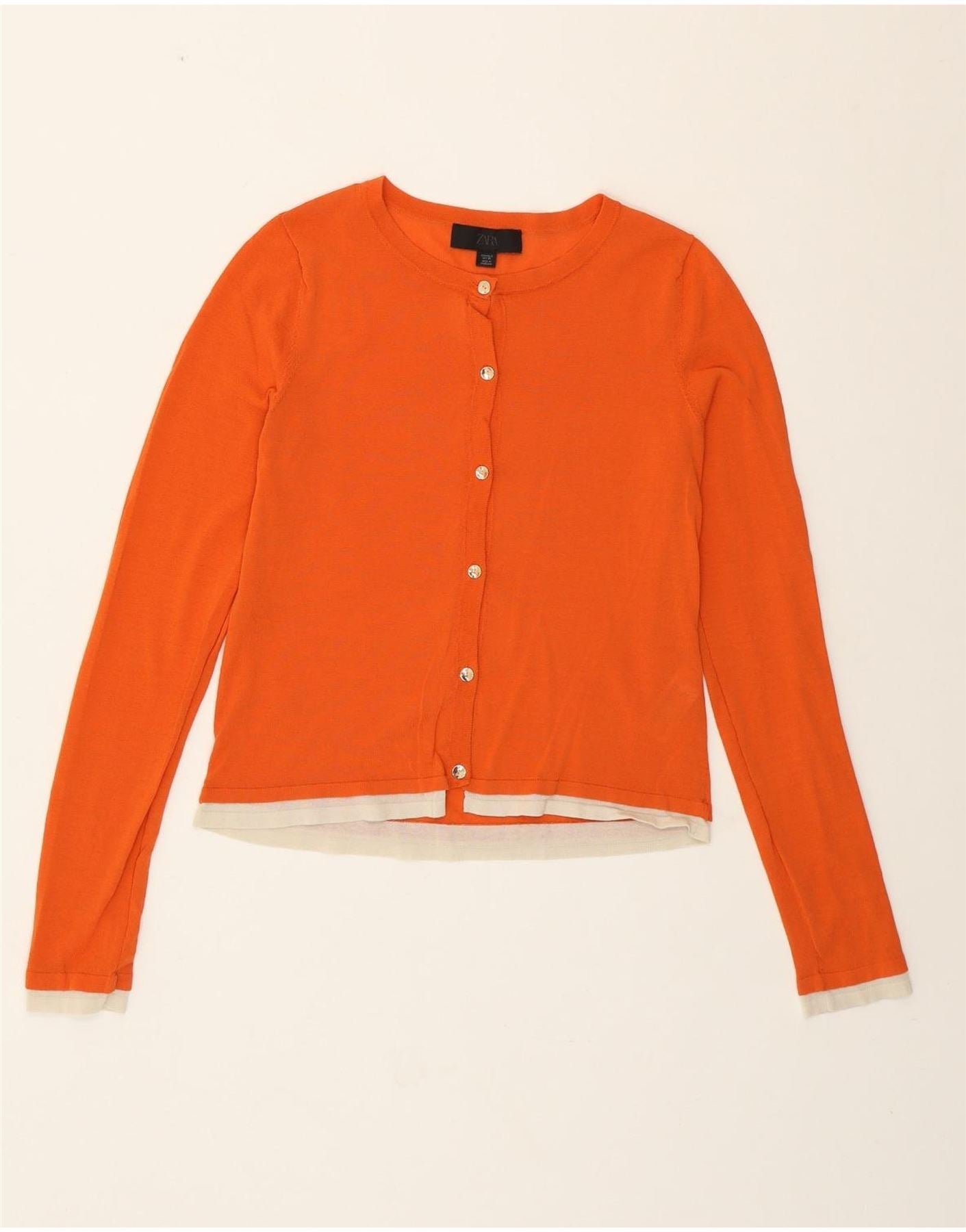 Zara Womens Crop Cardigan Sweater UK 10 Small Orange Colourblock Bomuld