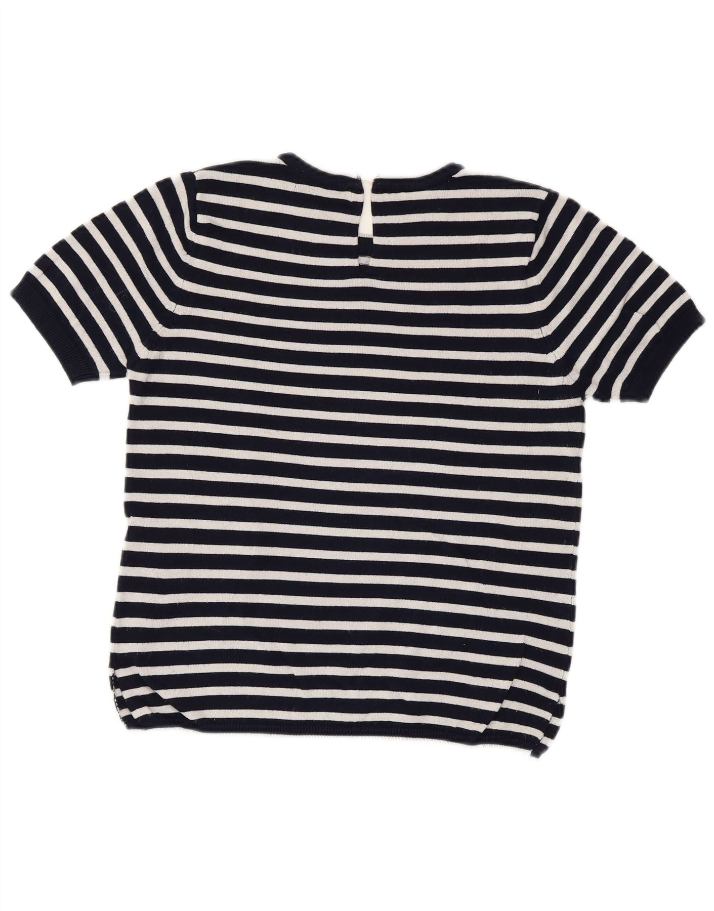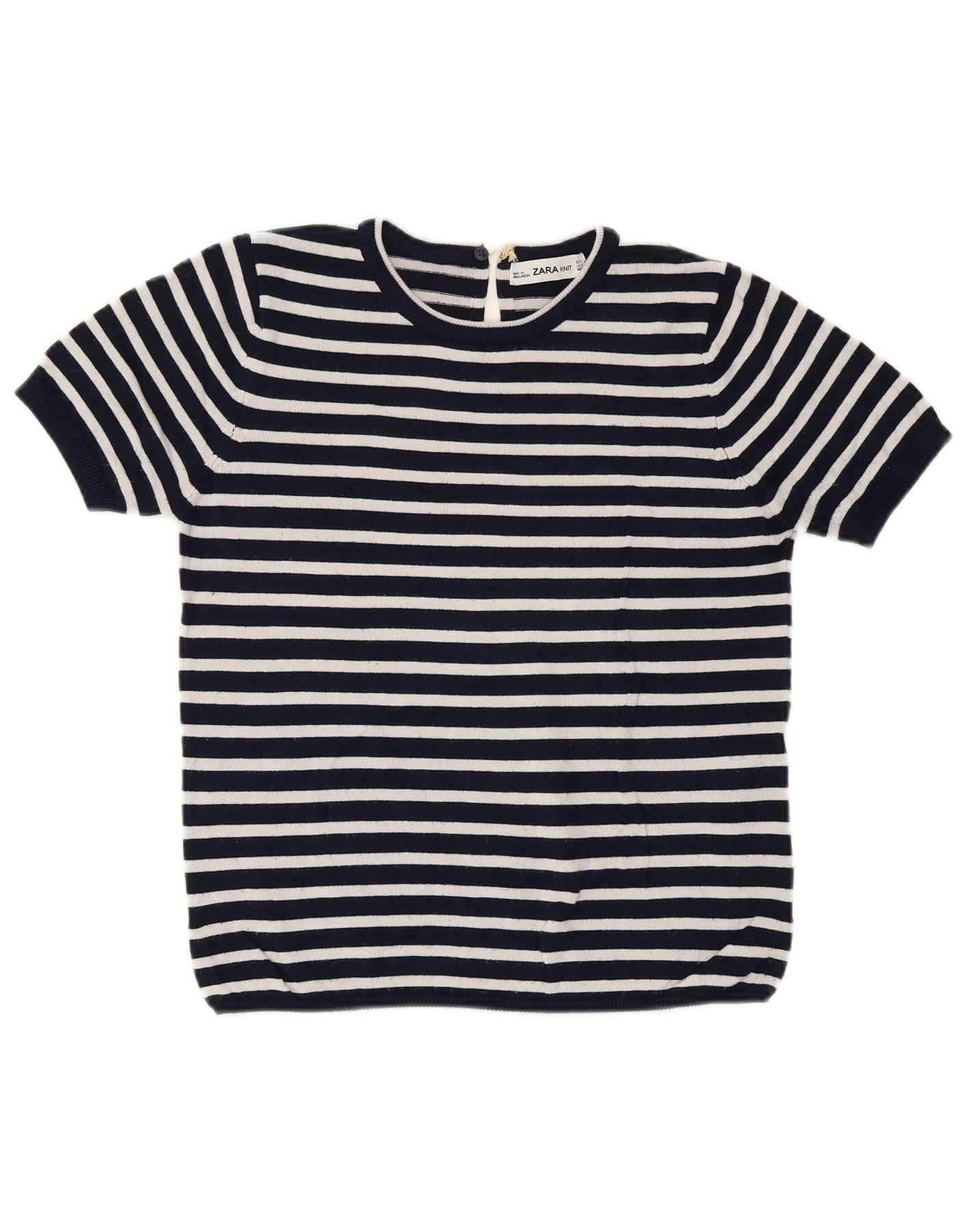 ZARA Womens Crop Crew Neck Jumper Sweater UK 10 Small Navy Blue Striped