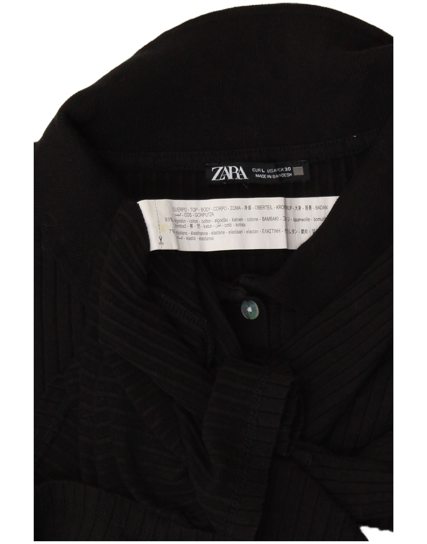 ZARA Dame Crop Langærmet Polo Shirt UK 14 Stor Sort Bomuld