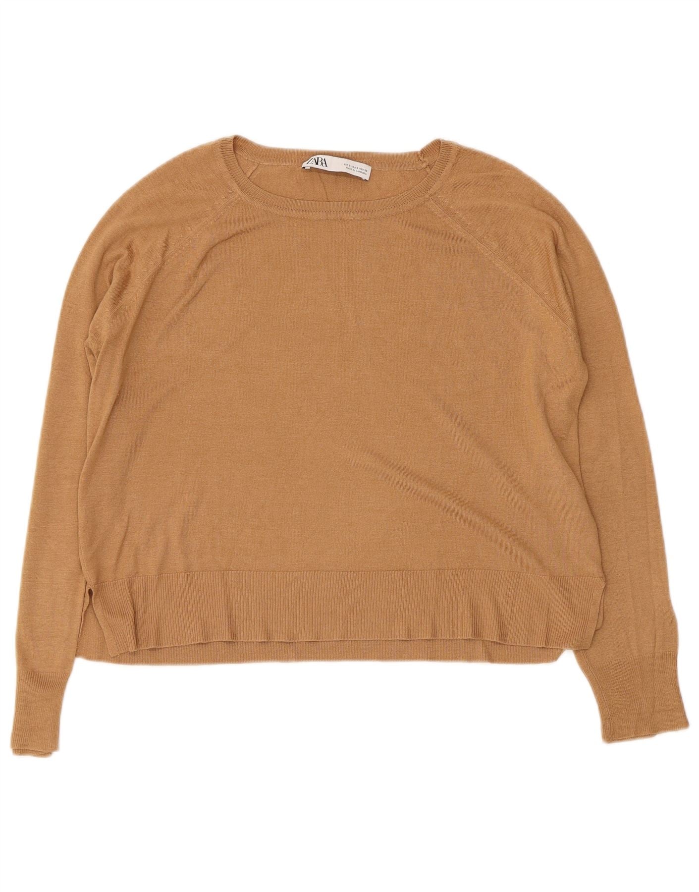 ZARA Womens Crop Oversized Boat Neck Jumper Sweater UK 10 Small Brown