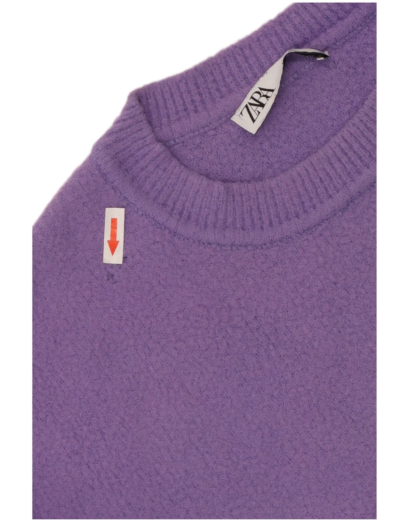 ZARA Womens Crop Oversized Crew Neck sweater UK 10 Small Purple