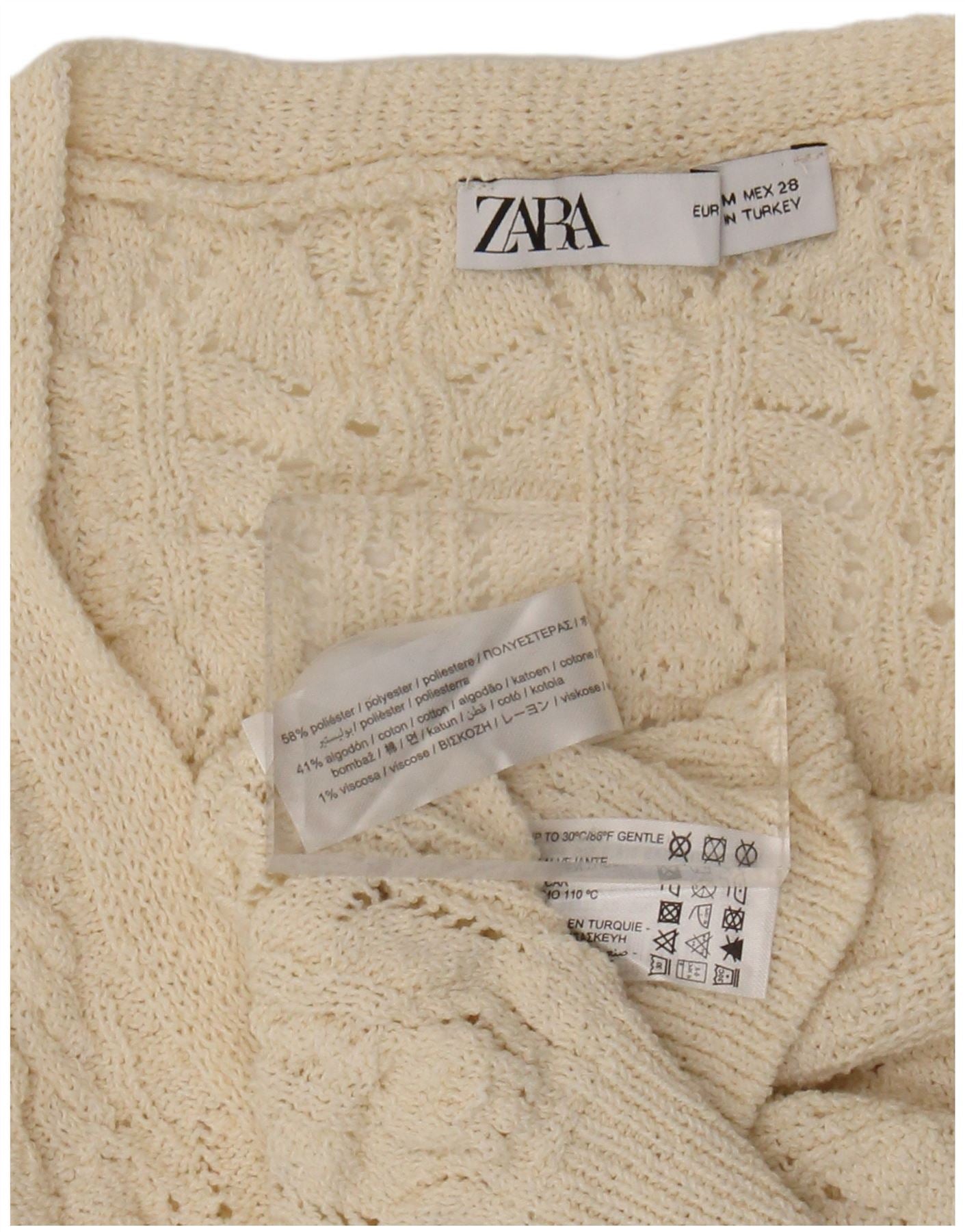 ZARA Womens Crop Ærmeløs cardigantrøje UK 14 Medium Beige Polyester