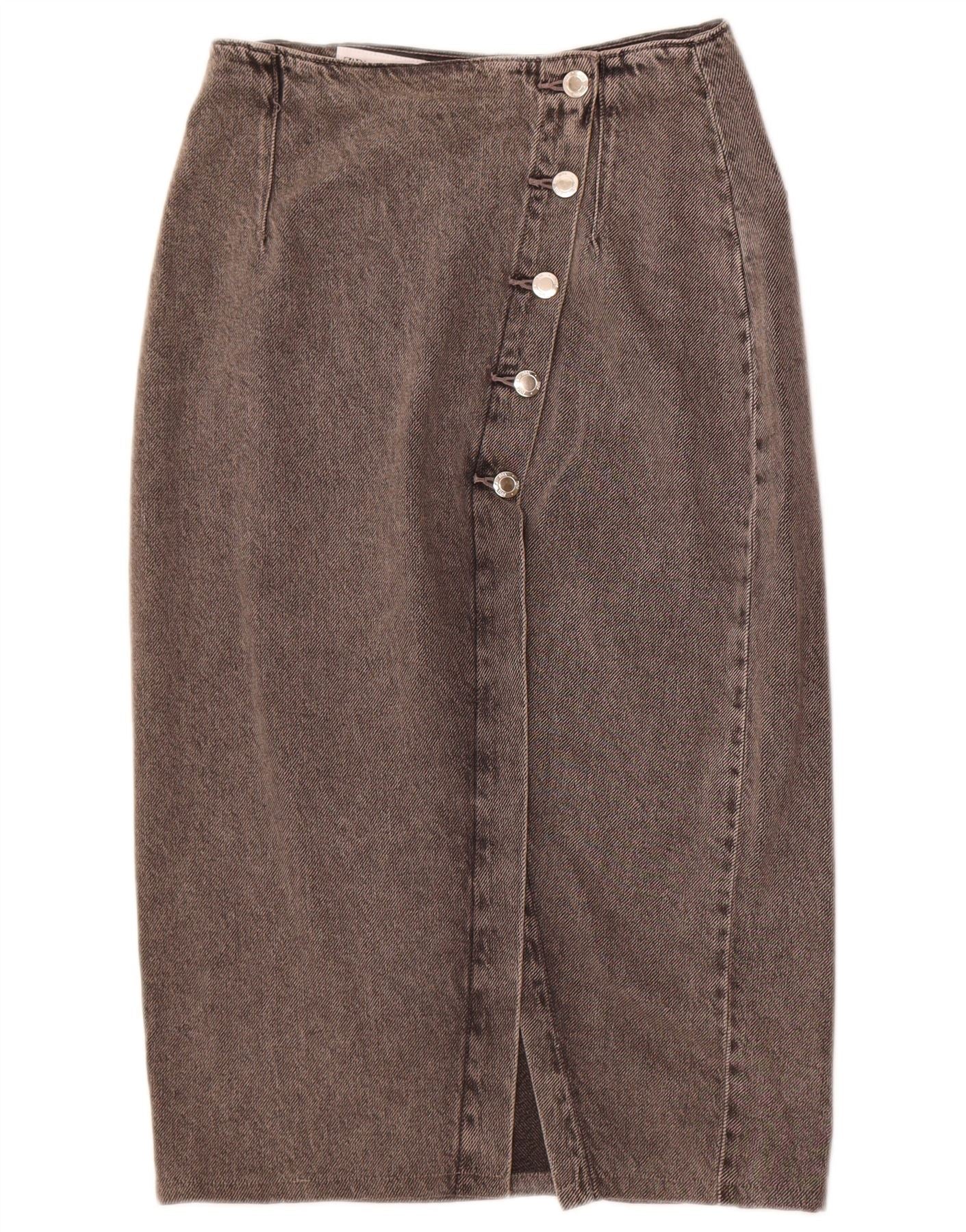 Zara Dame Denim Nederdel XS W24 Grå Bomuld
